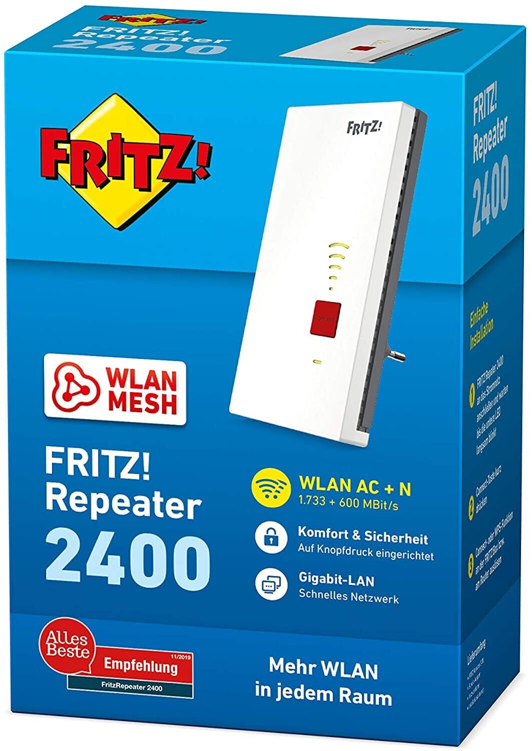 AVM AVM FRITZ!WLAN Mesh Repeater 2400 Dual-WLAN AC + N 5GHz 2,4 GHz WPS Wi-Fi