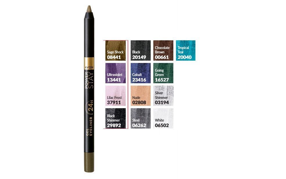 AVON POWER STAY Gel Eyeliner Wasserfest 24 Stunden** wisch- und wasserfeste, Farbe, die nicht verblasst Super zarte, leicht verblendbare Formel für einen Smokey-Eyes-Effekt Kreiert markante Linien für eine beeindruckende Definition **Basierend auf einer Verbraucherstudie mit 137 Teilnehmer*innen 1,2 g