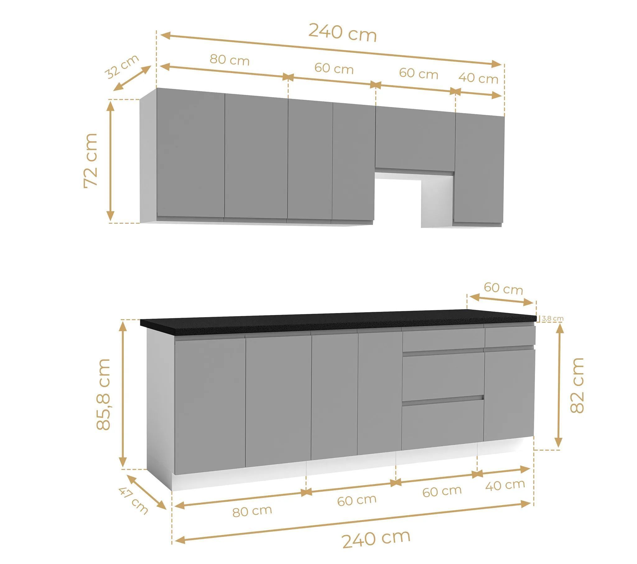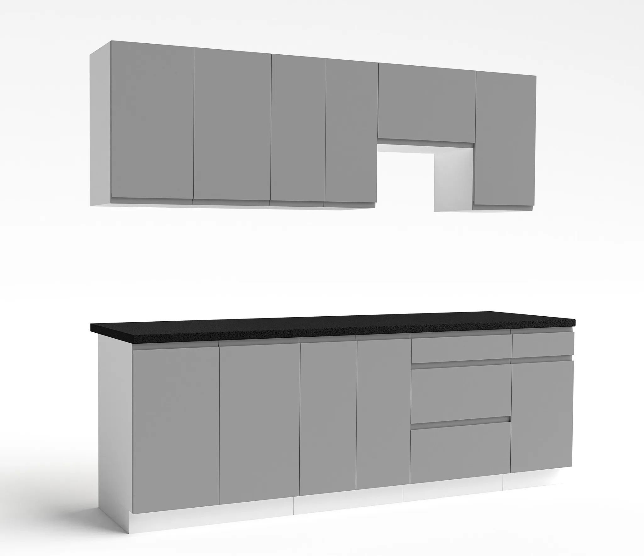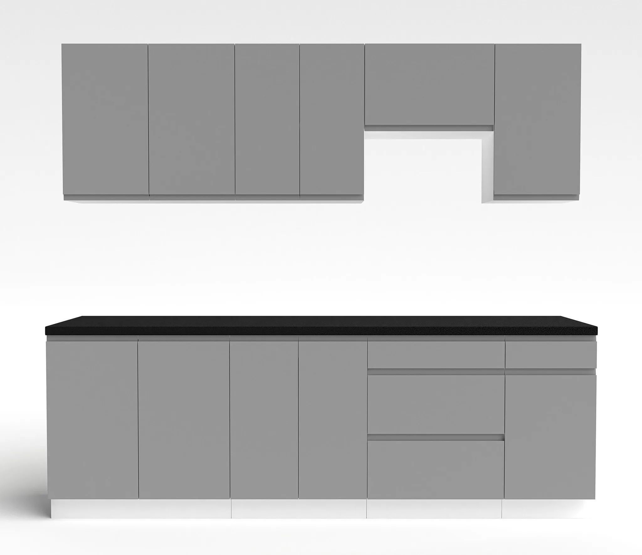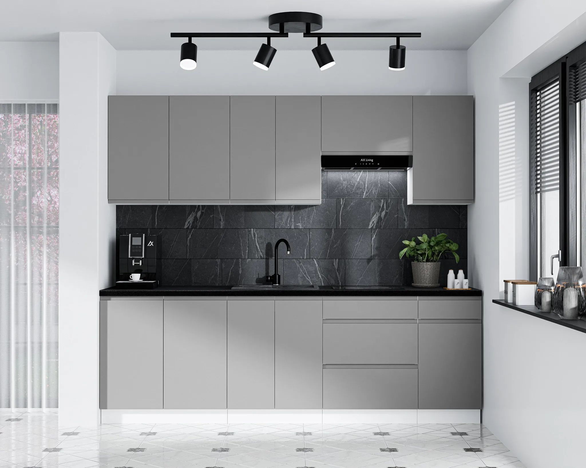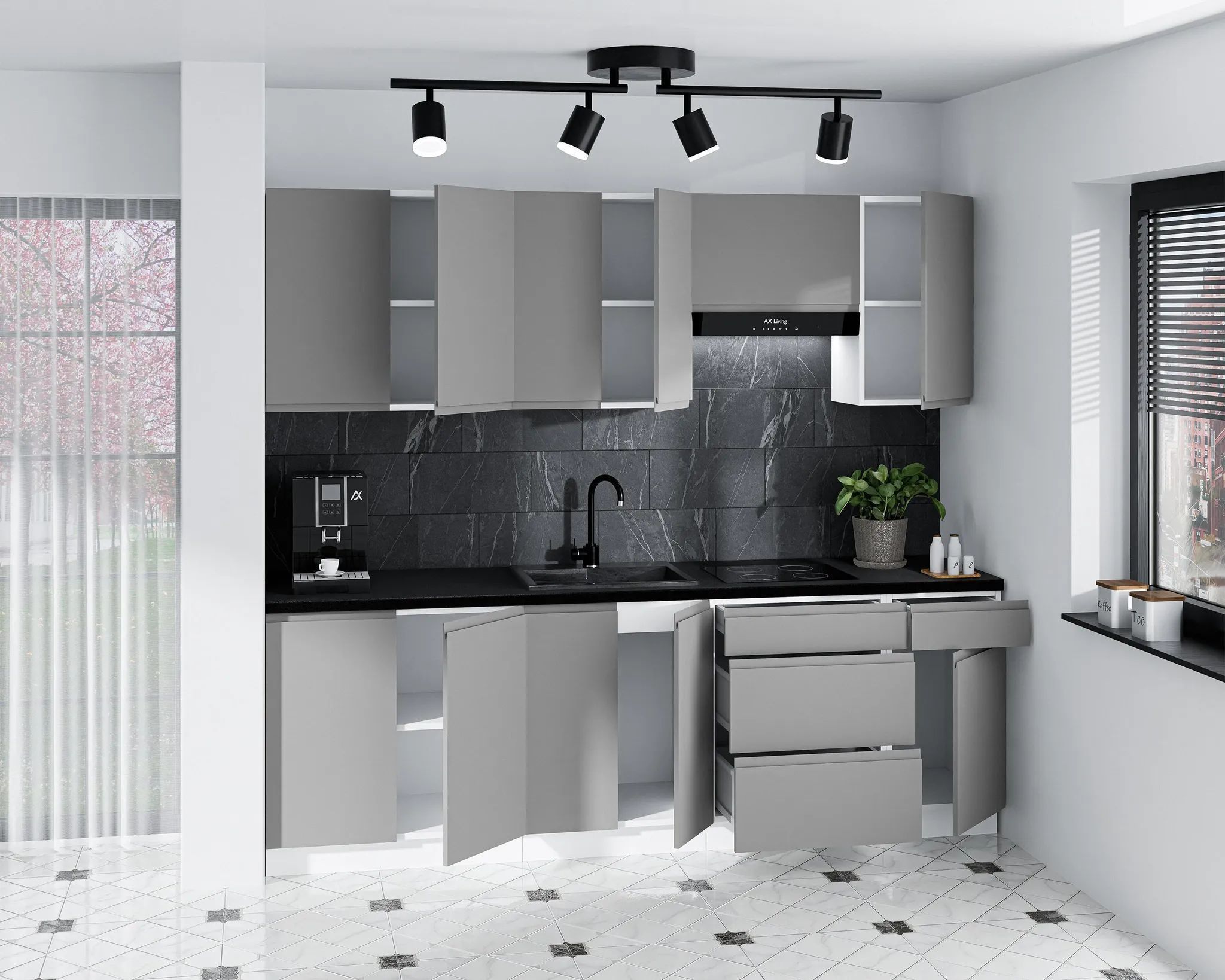 AX LIVING Aquileia Küchenzeile 240 cm - Grau Fronten mit Weißem Korpus und Arbeitspla