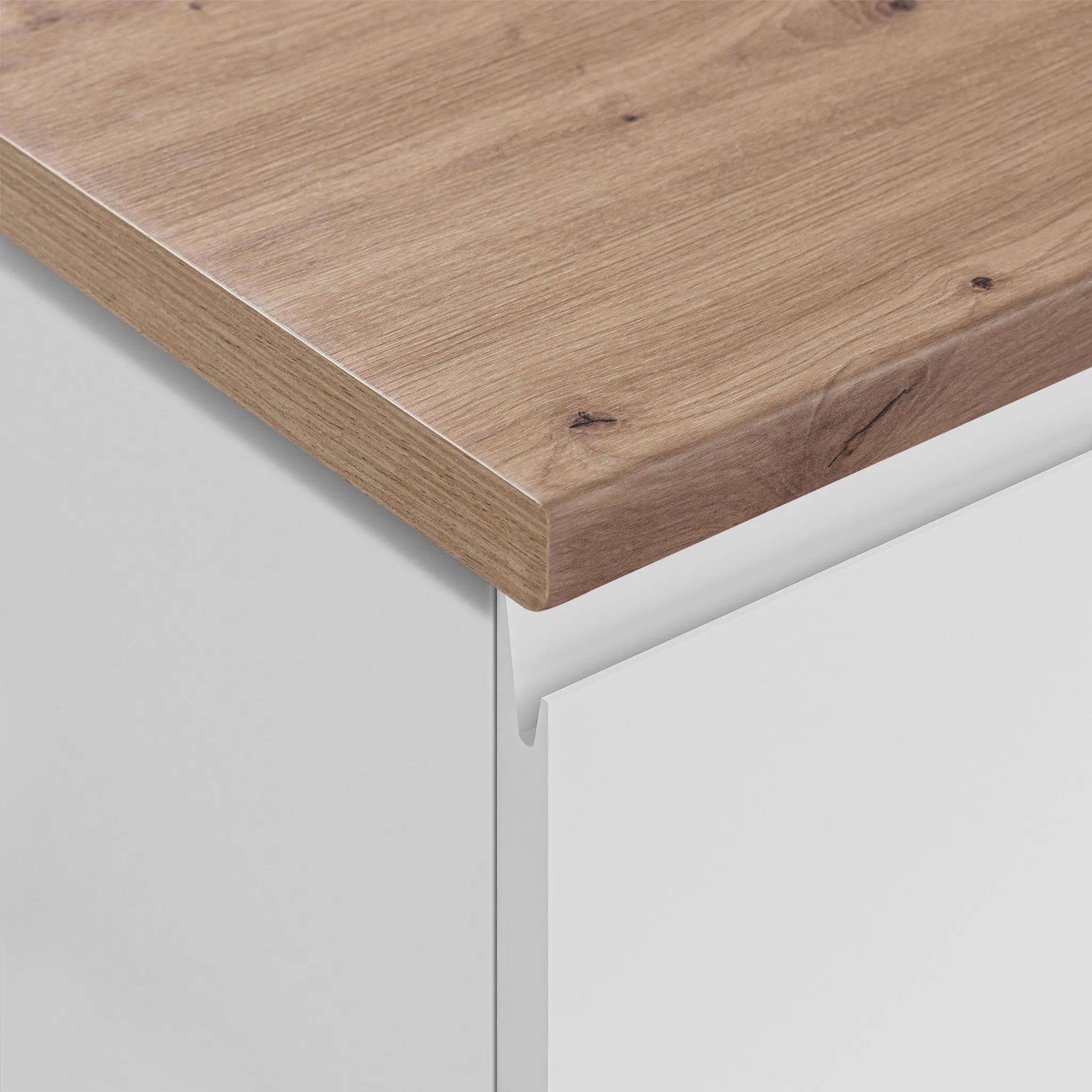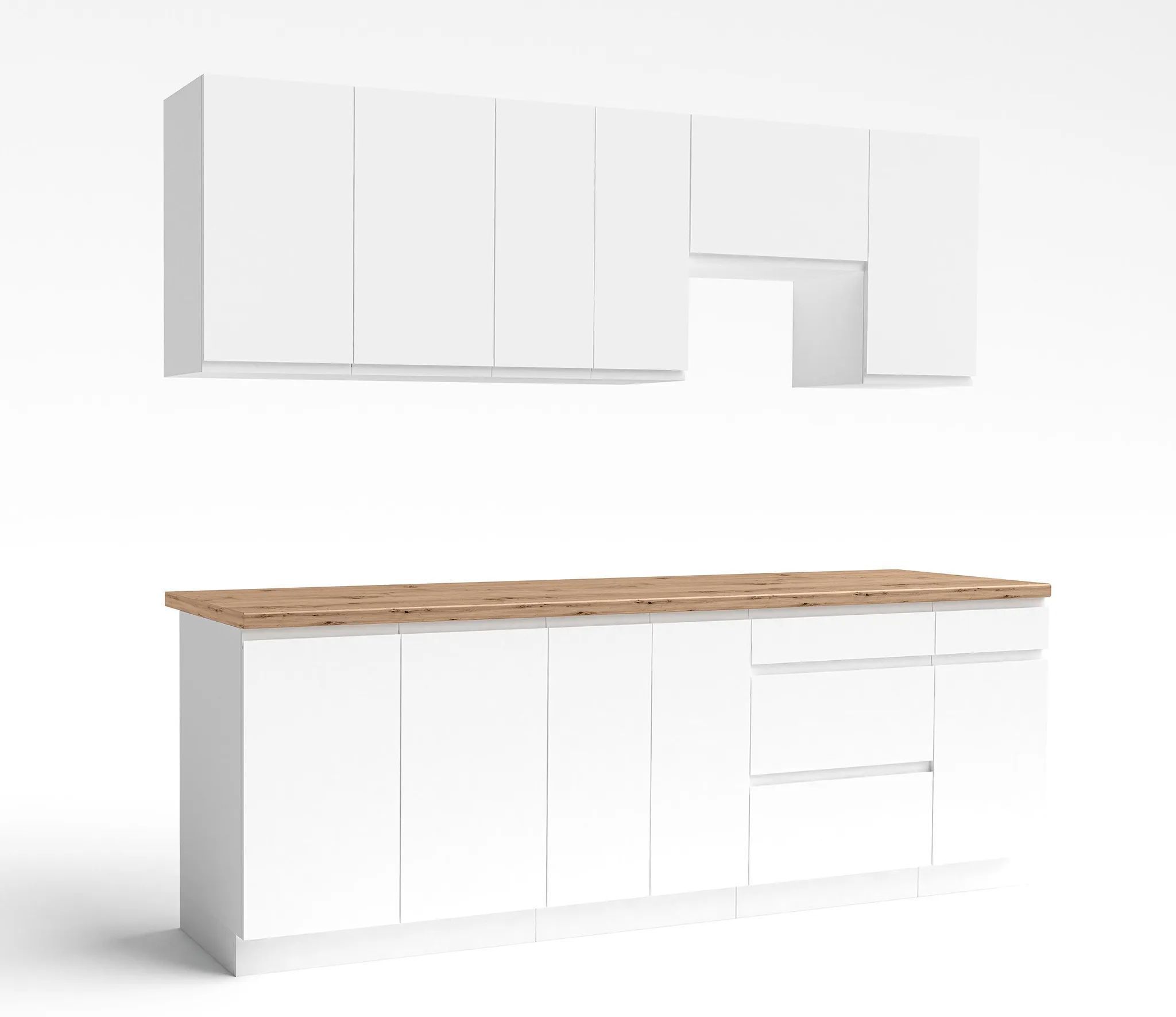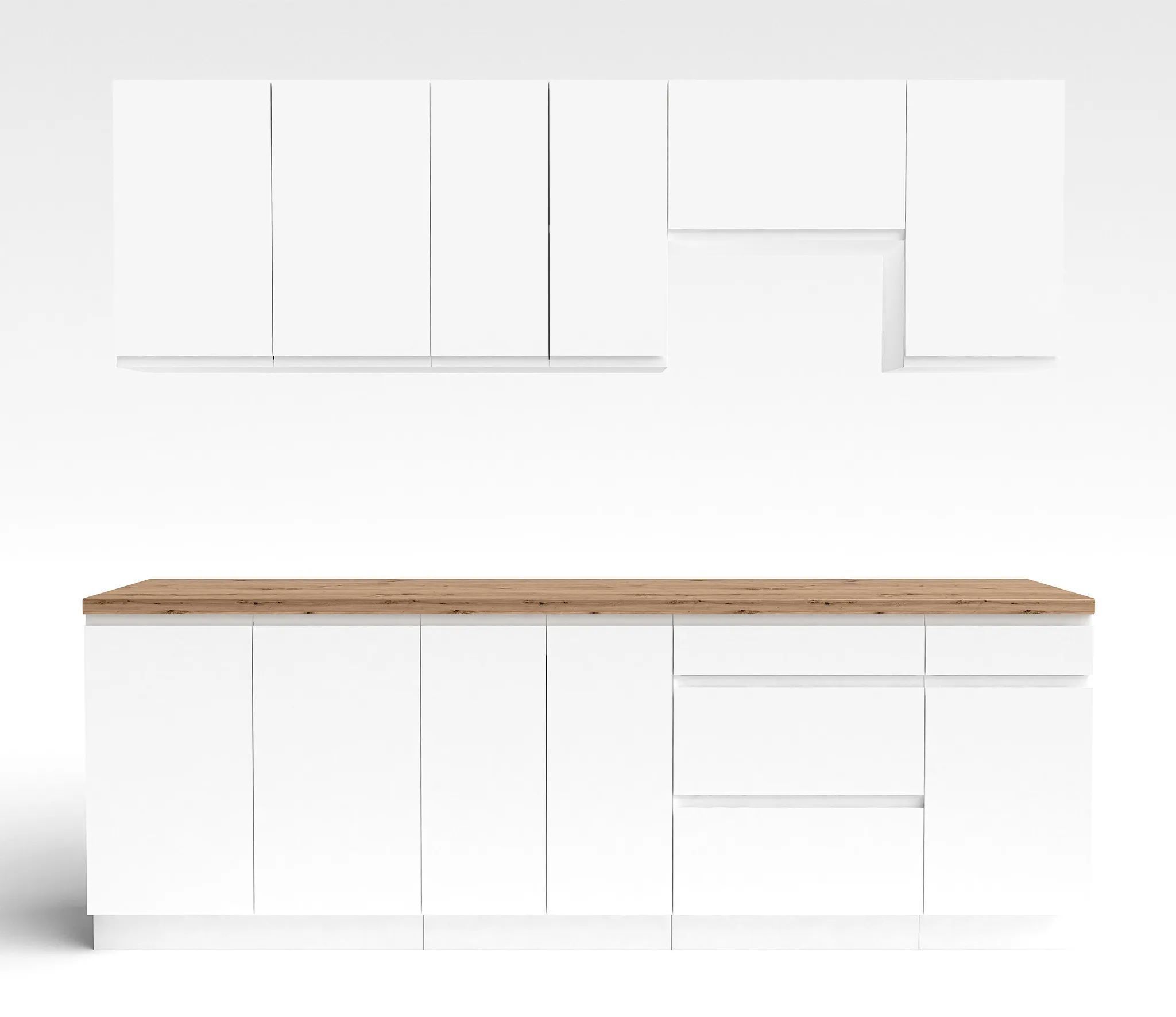 AX LIVING Aquileia Küchenzeile 240 cm - Weiß Matt mit Arbeitsplatte Eiche Artisan