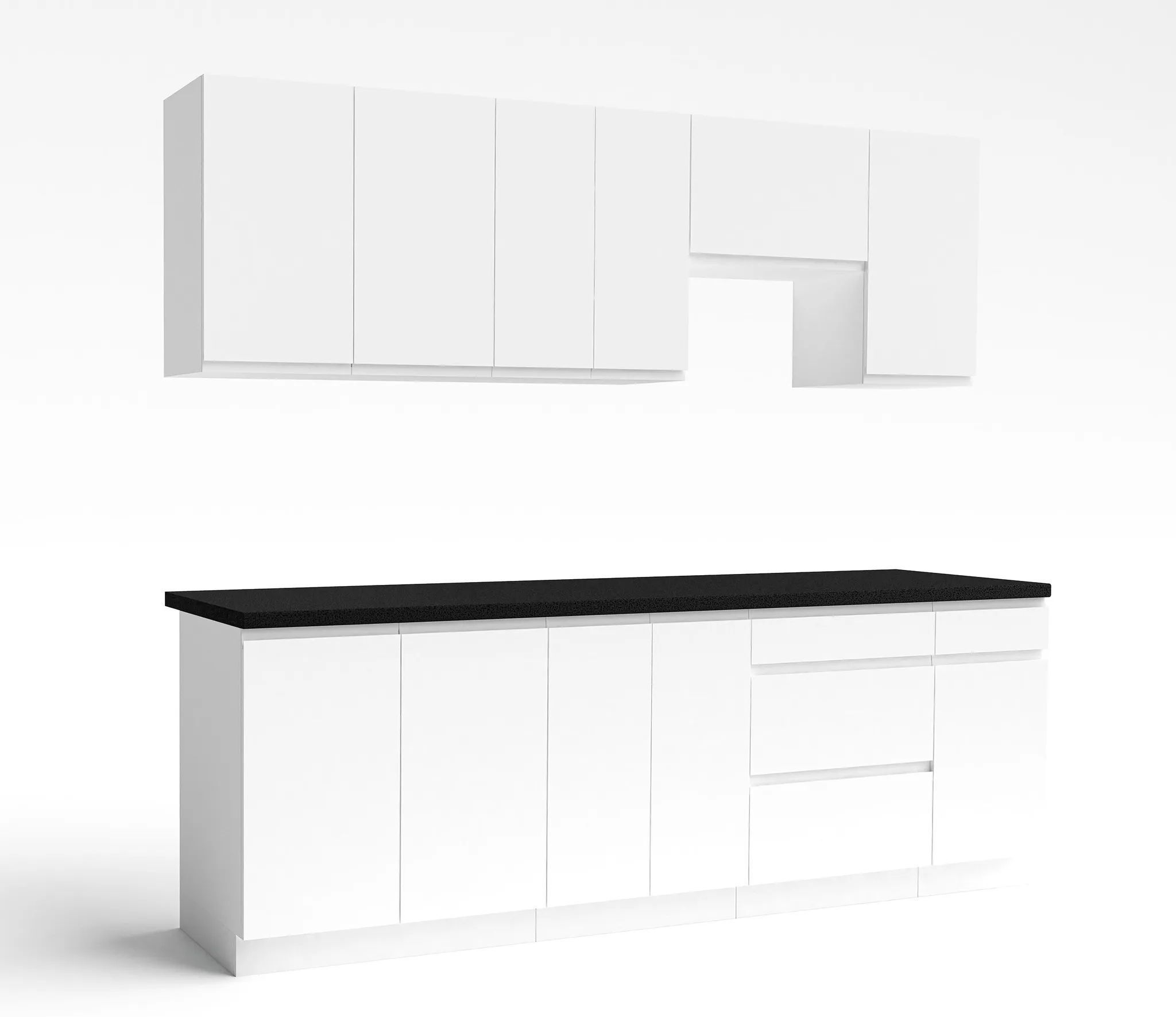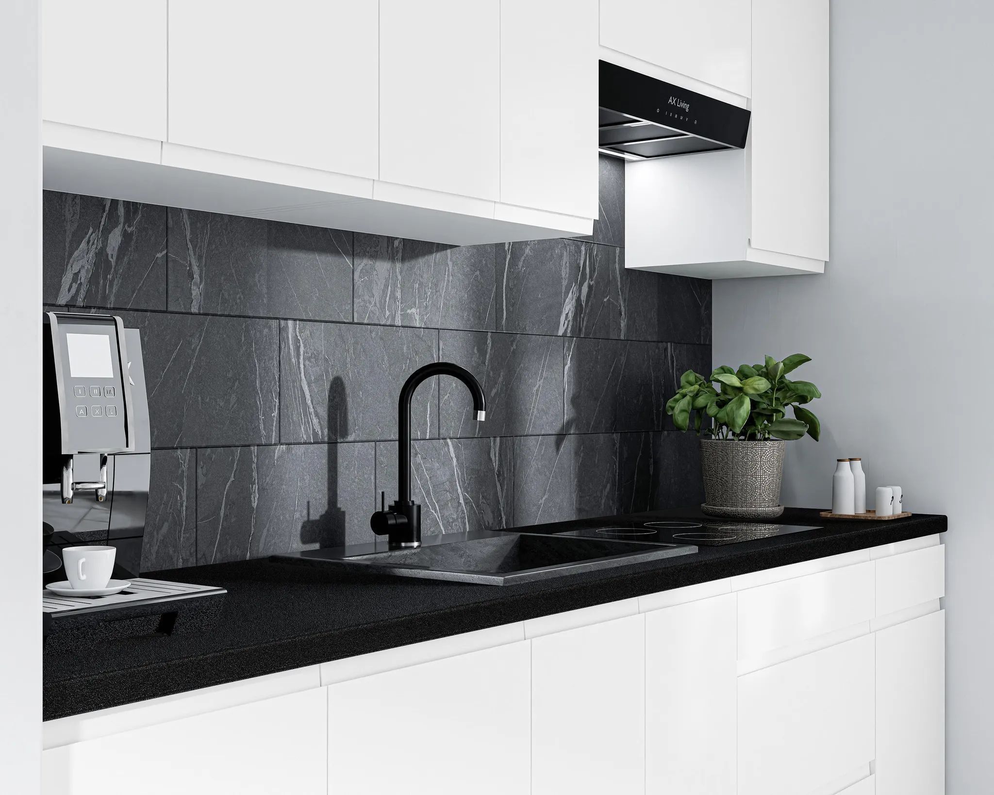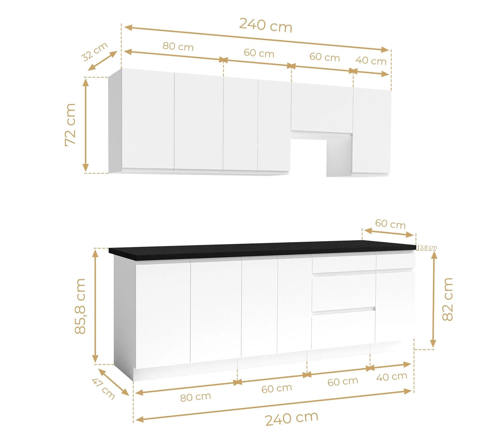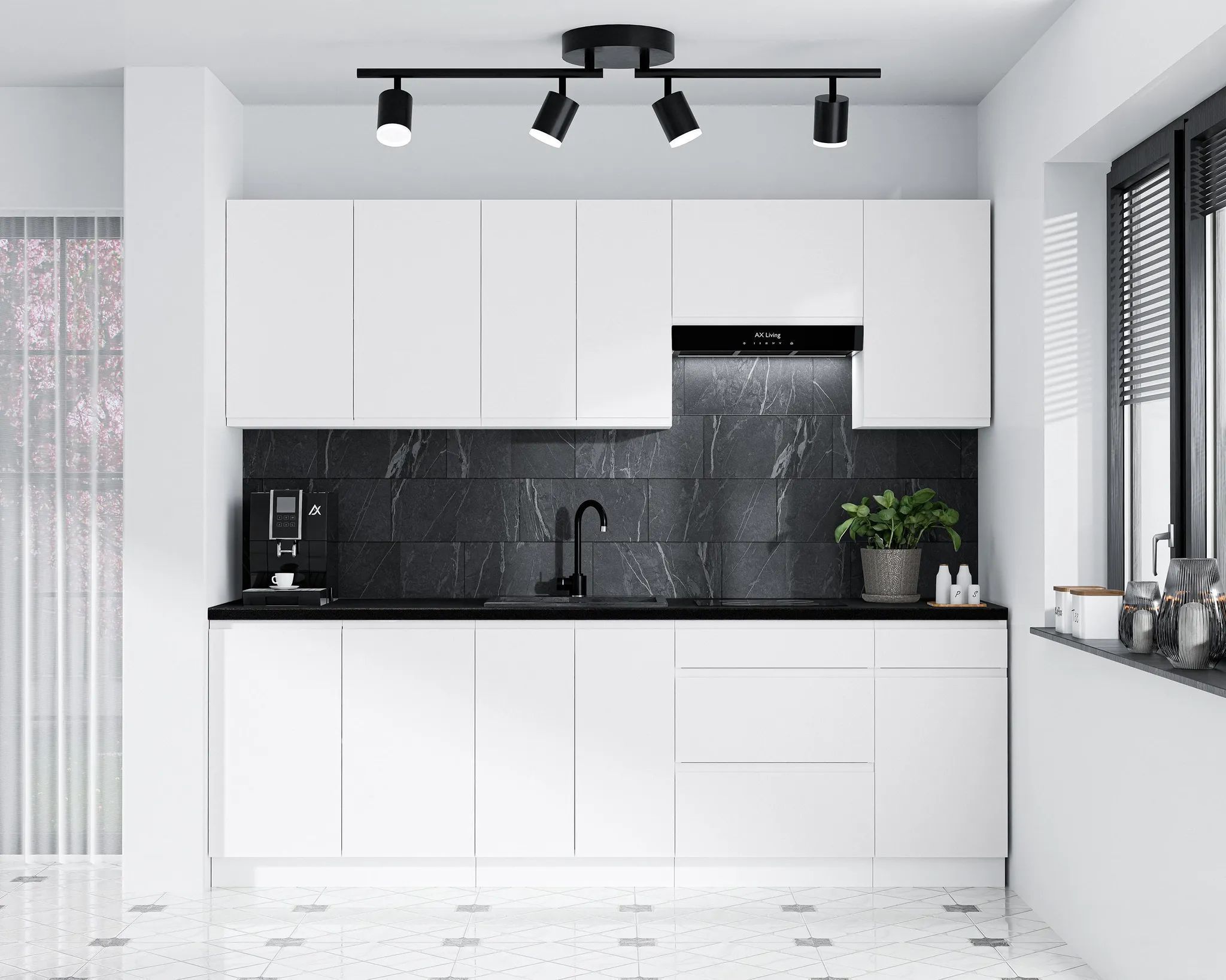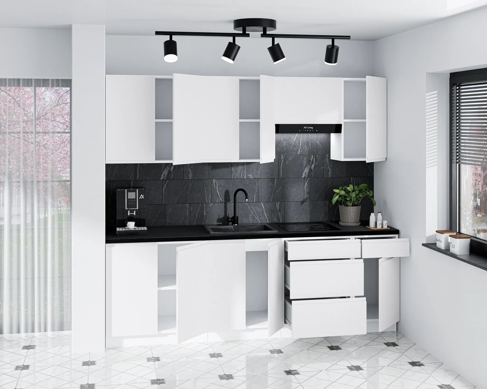 AX LIVING Aquileia Küchenzeile 240 cm Weiß Matt mit Arbeitsplatte Vulkanisch Schwarz