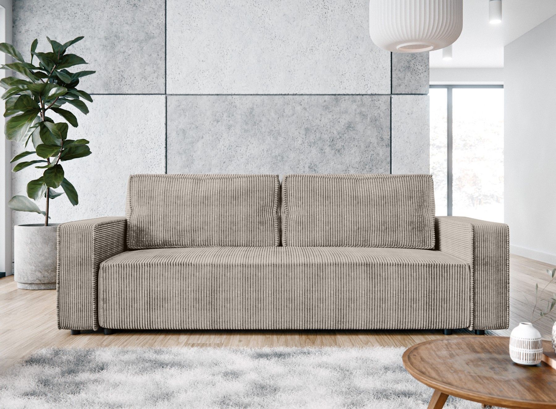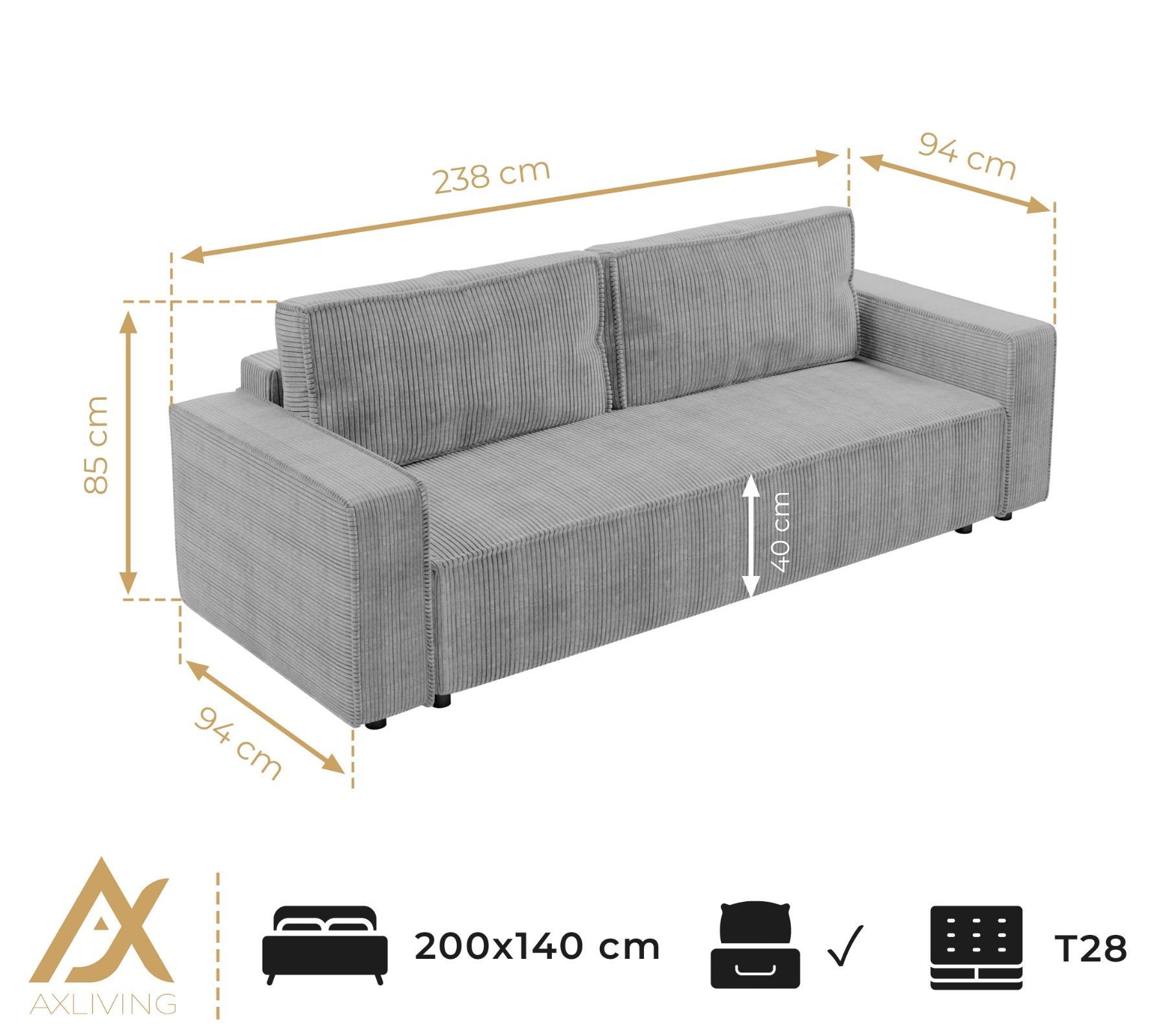 AX LIVING Aydin Cord Sofa 3 Sitzer Sofa mit Schlaffunktion Beige 238cm