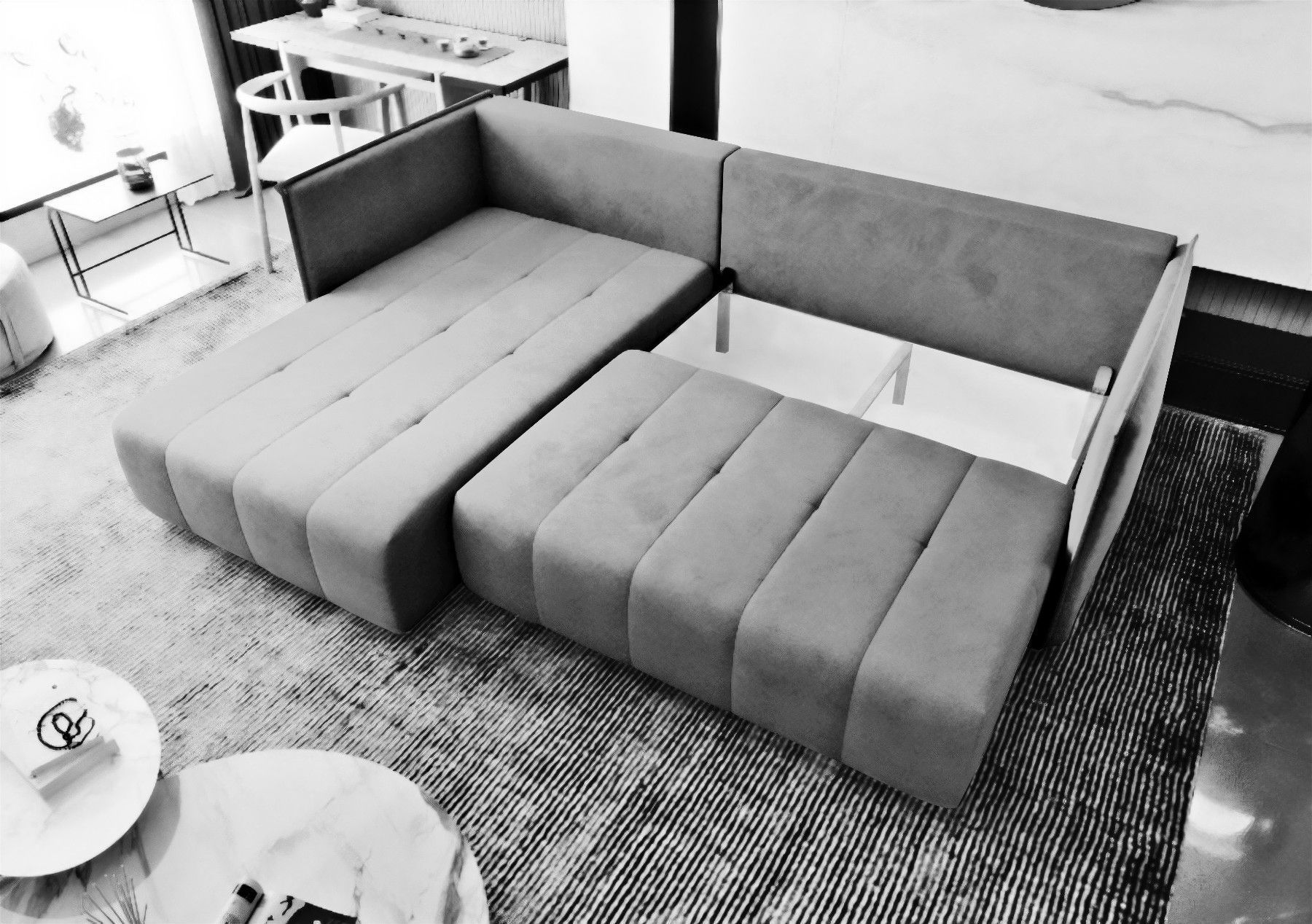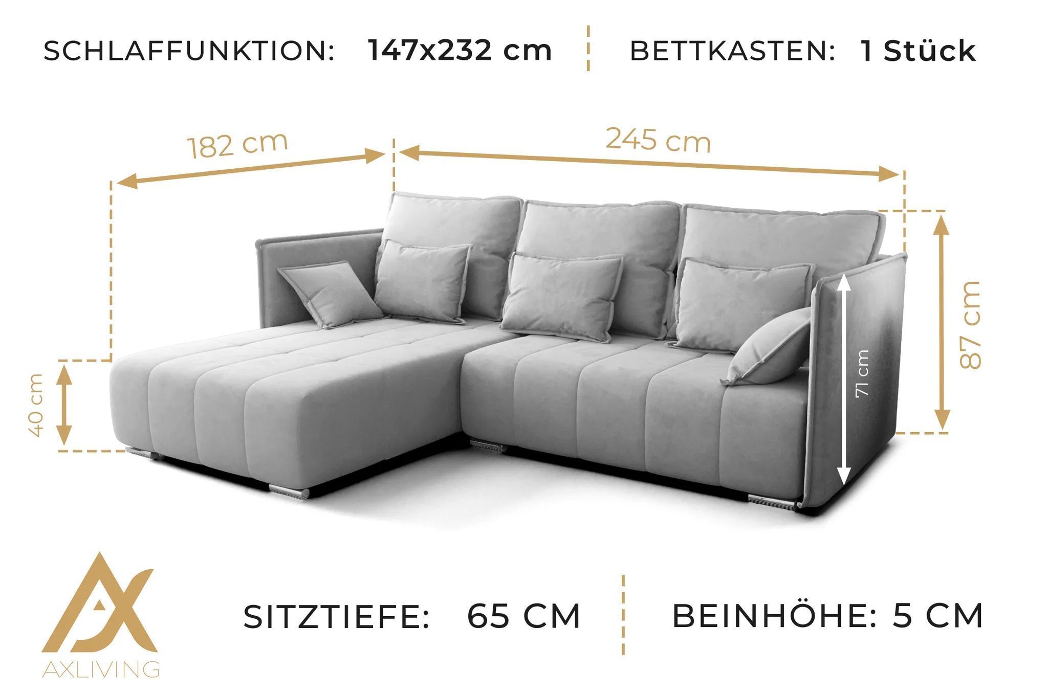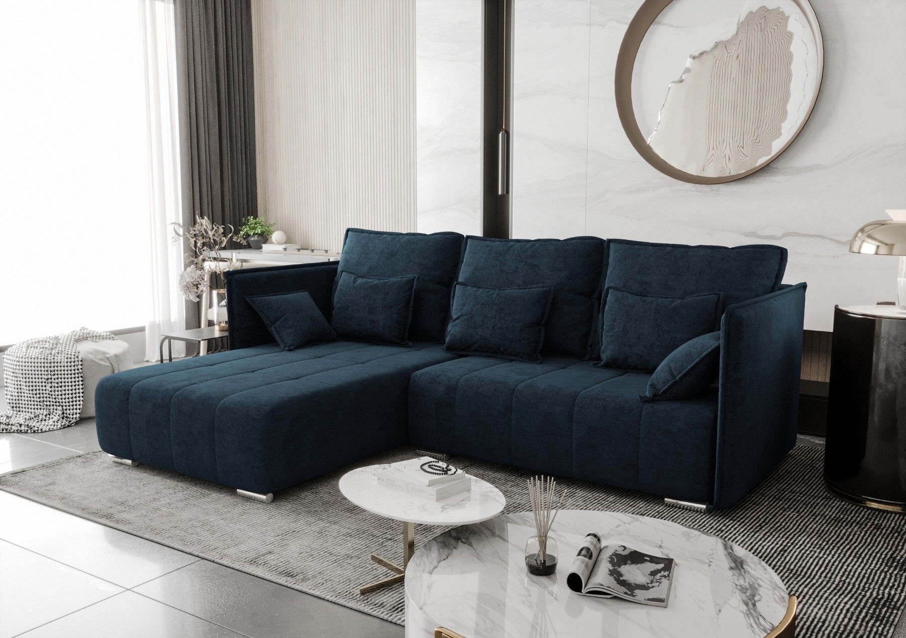 AX LIVING Blau Ecksofa mit Schlaffunktion Florinna 248cm L-Form
