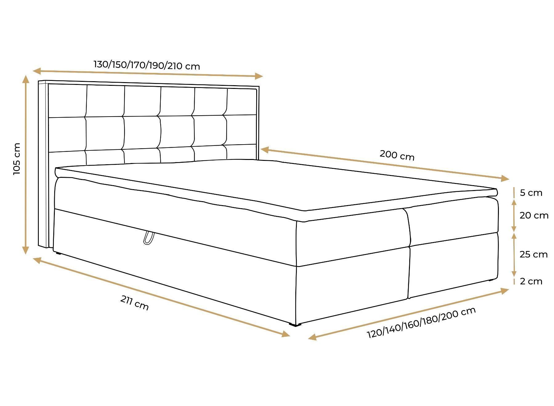 AX LIVING Boxspringbett 140x200 mit Bettkasten Vendio in Schwarz