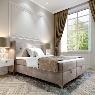 • AX LIVING Stauraum Boxspringbett 140x200 cm Geceteni Doppel Bett Beige