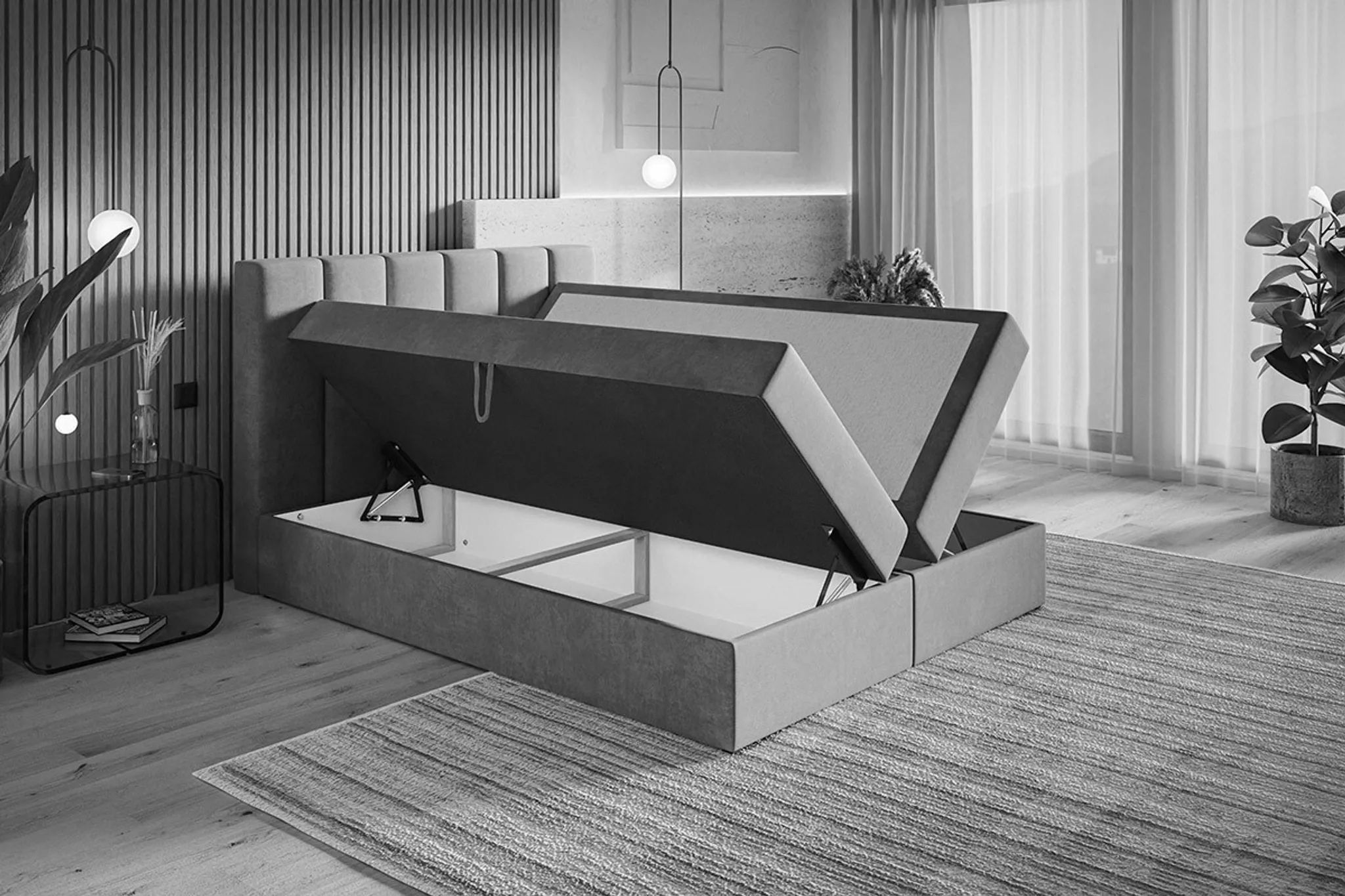 • AX LIVING Boxspringbett 160x200 Palmeria in Graphit mit Stauraum und Topper