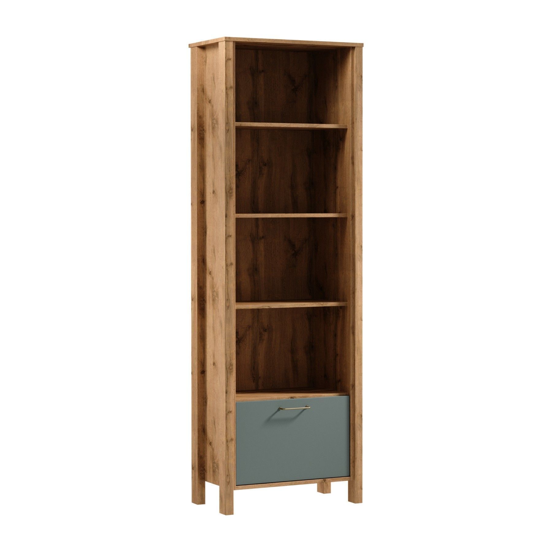 AX LIVING Bücher Regal Iseonia R1K - 66 cm breit, Eiche Wotan/Green
