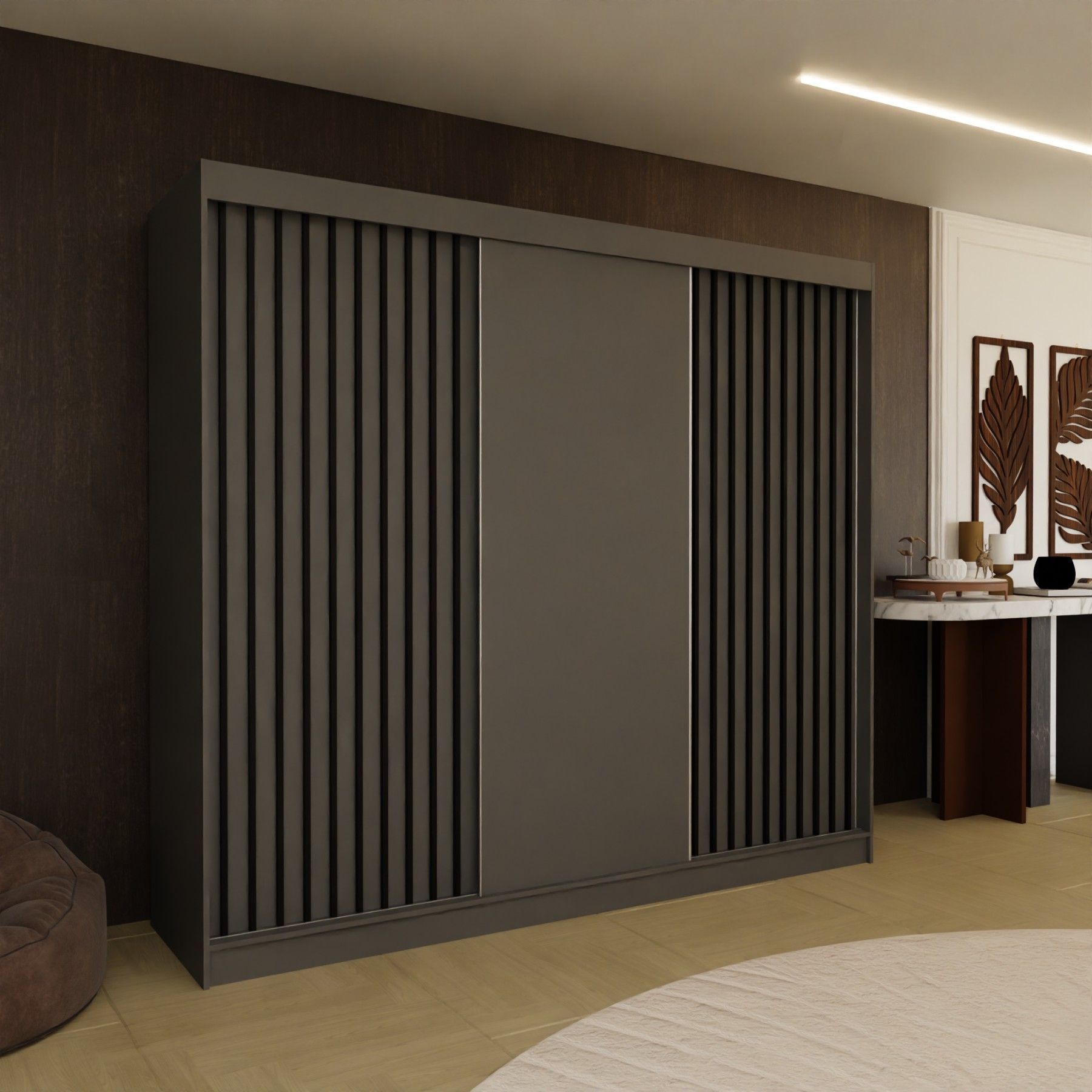 AX Living Cabinio Schwebetürenschrank Grau - 240cm Schwarz Lamellen