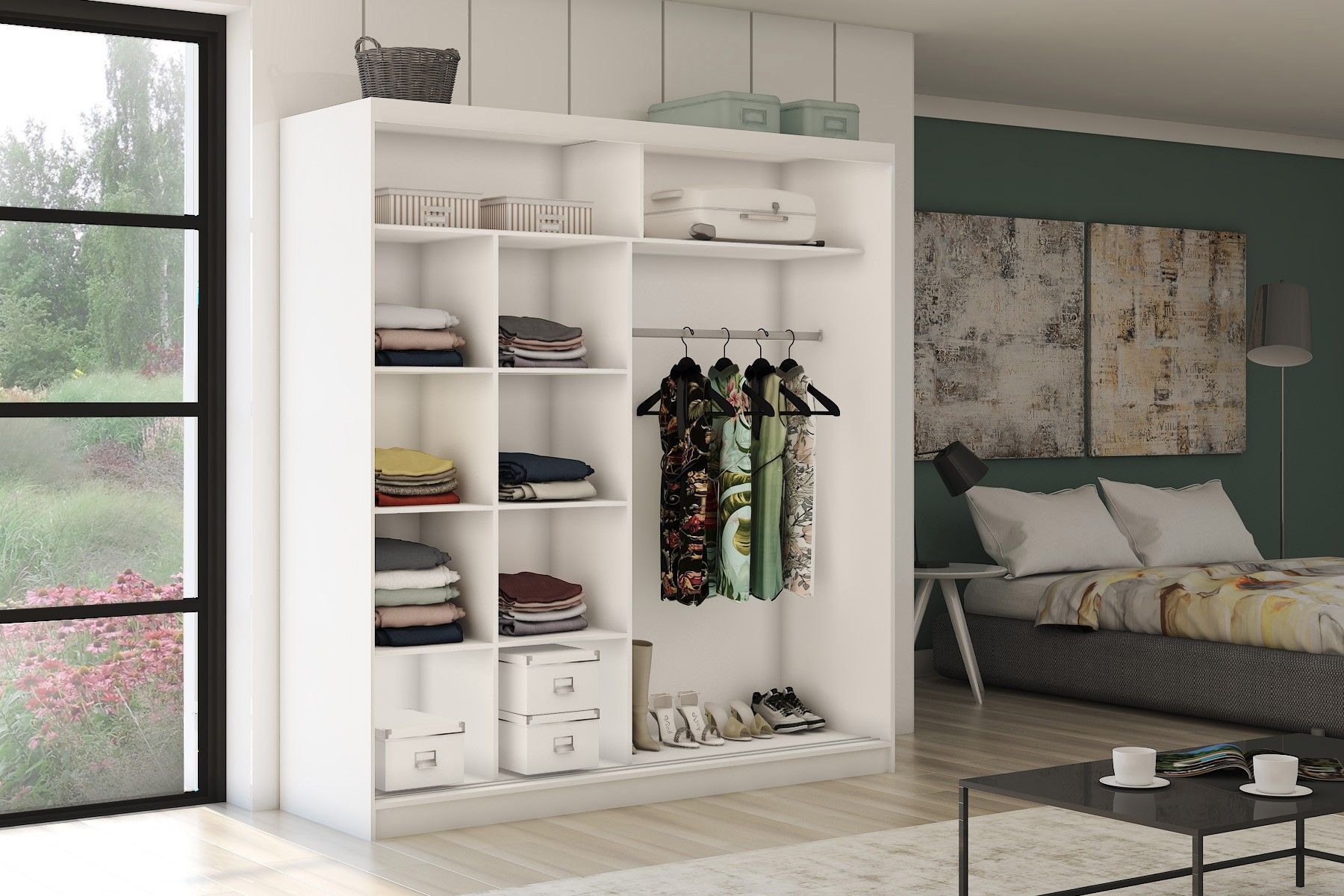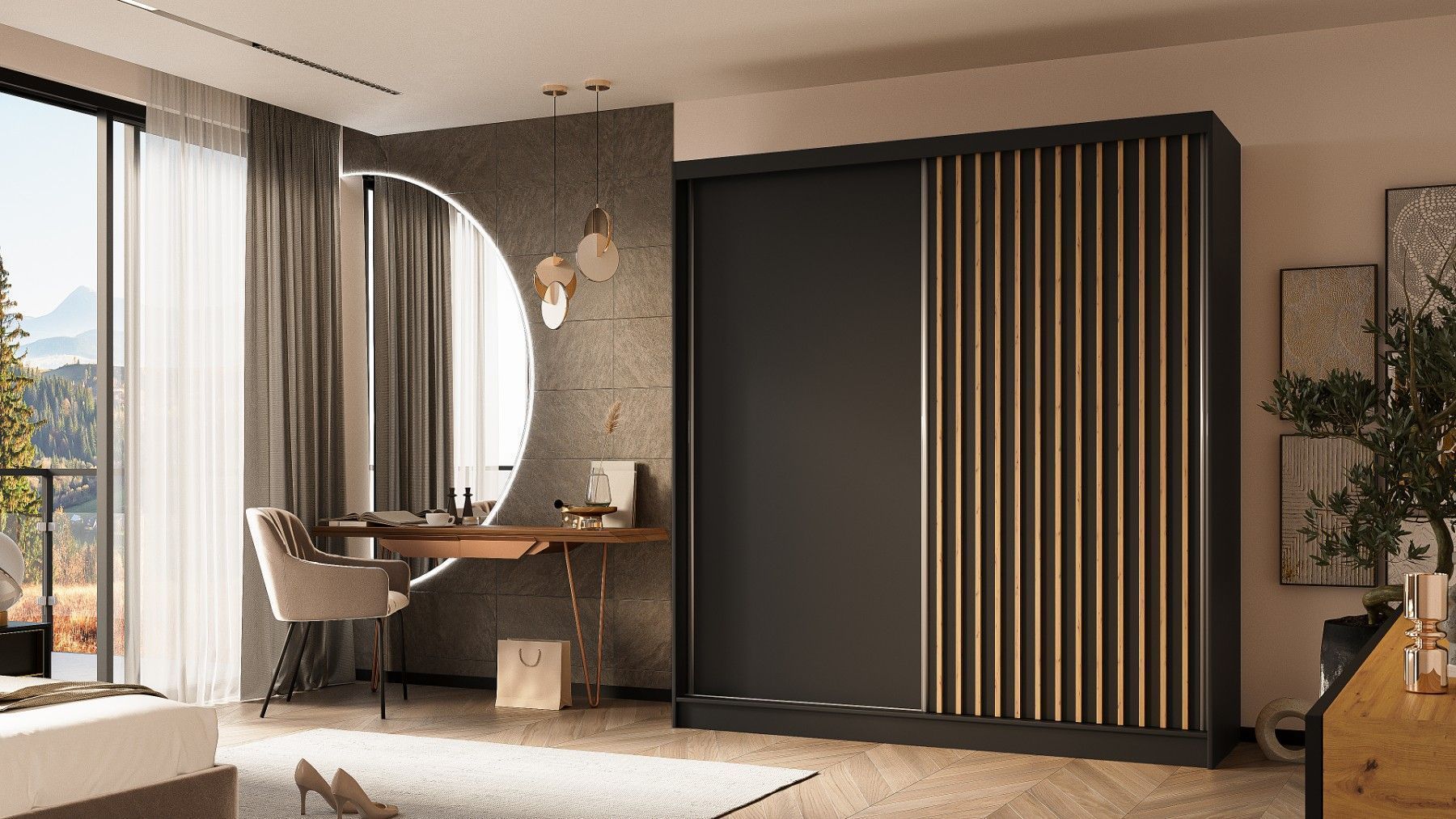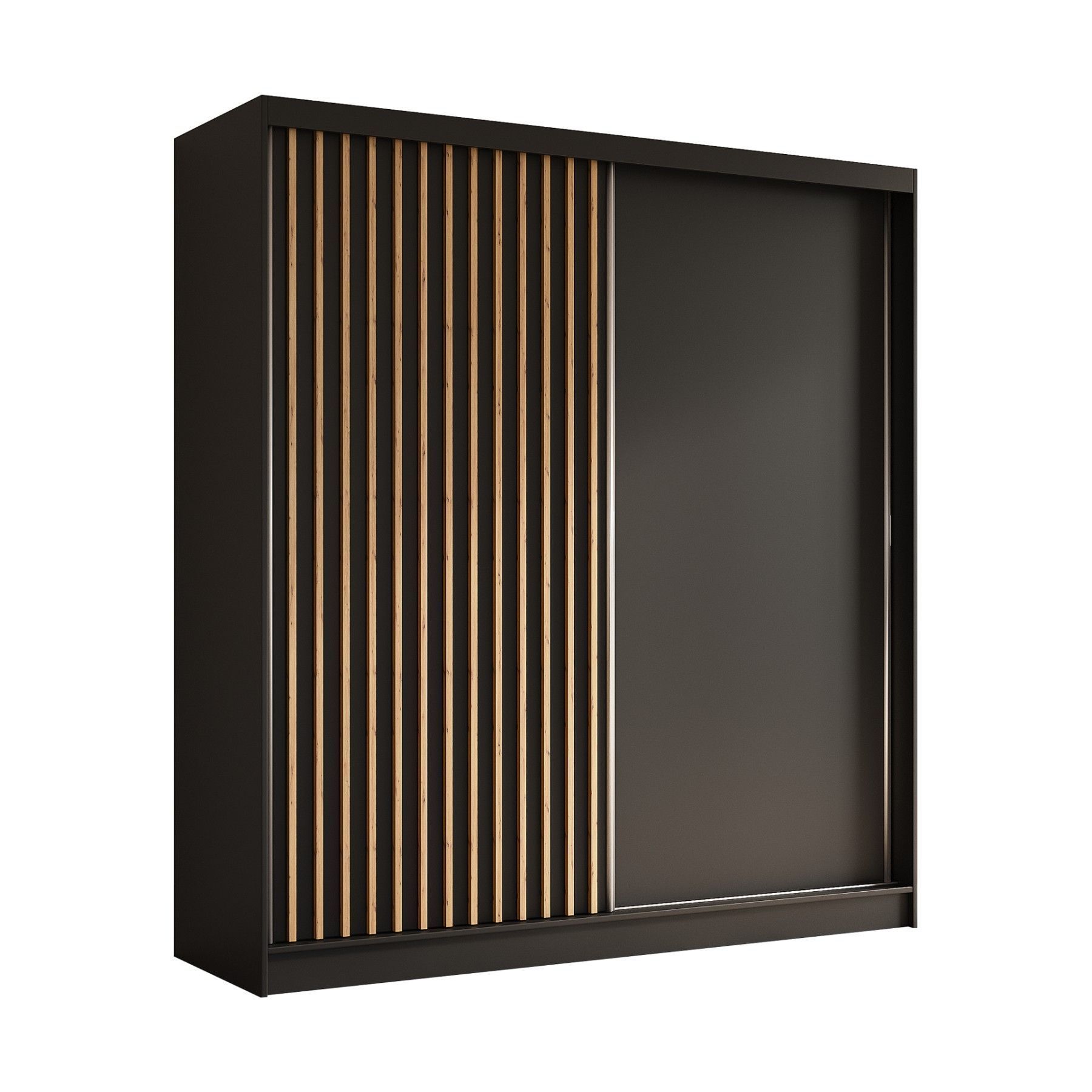 AX Living Cabinio Schwebetürenschrank Schwarz 200cm mit Lamellen