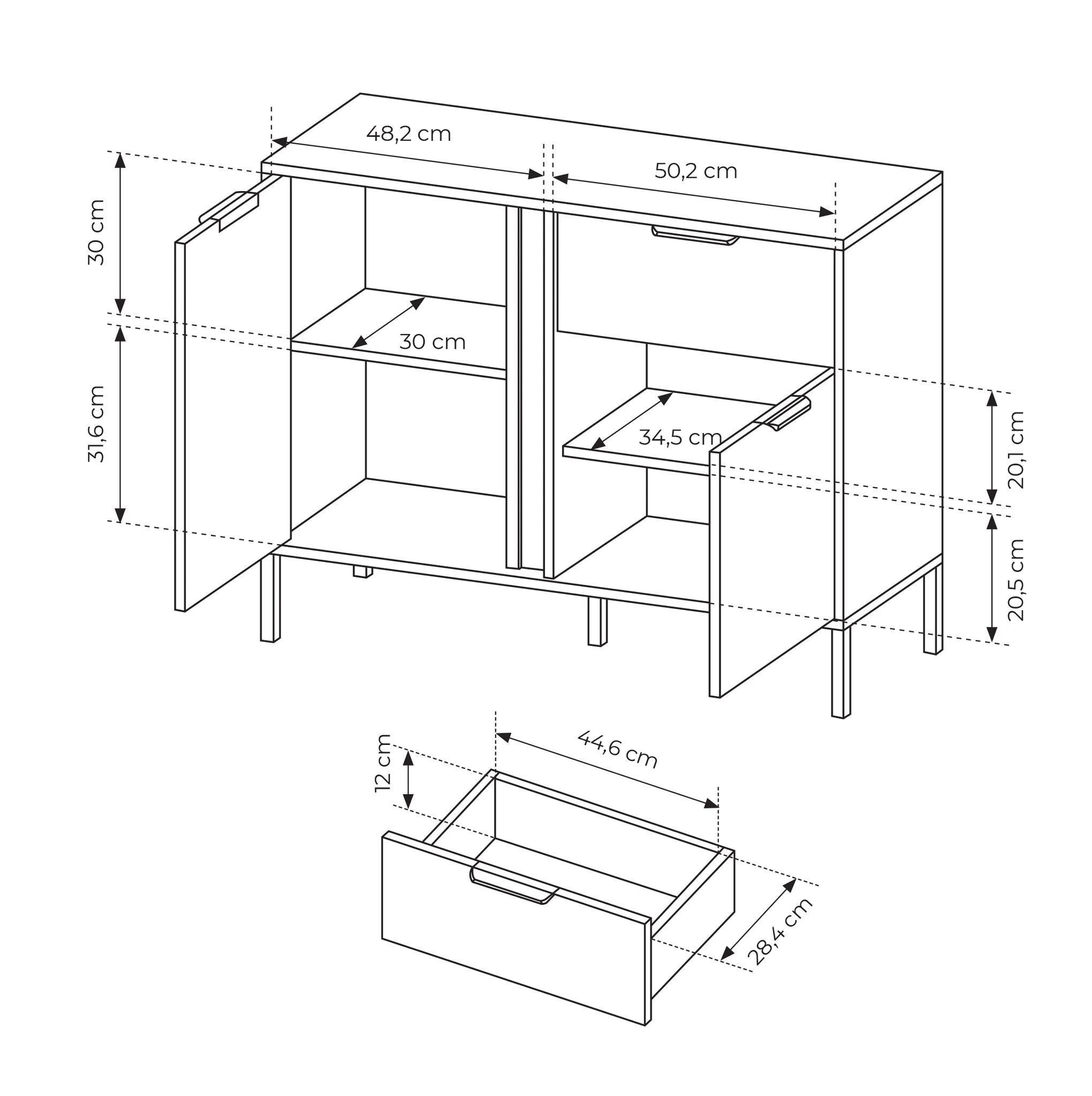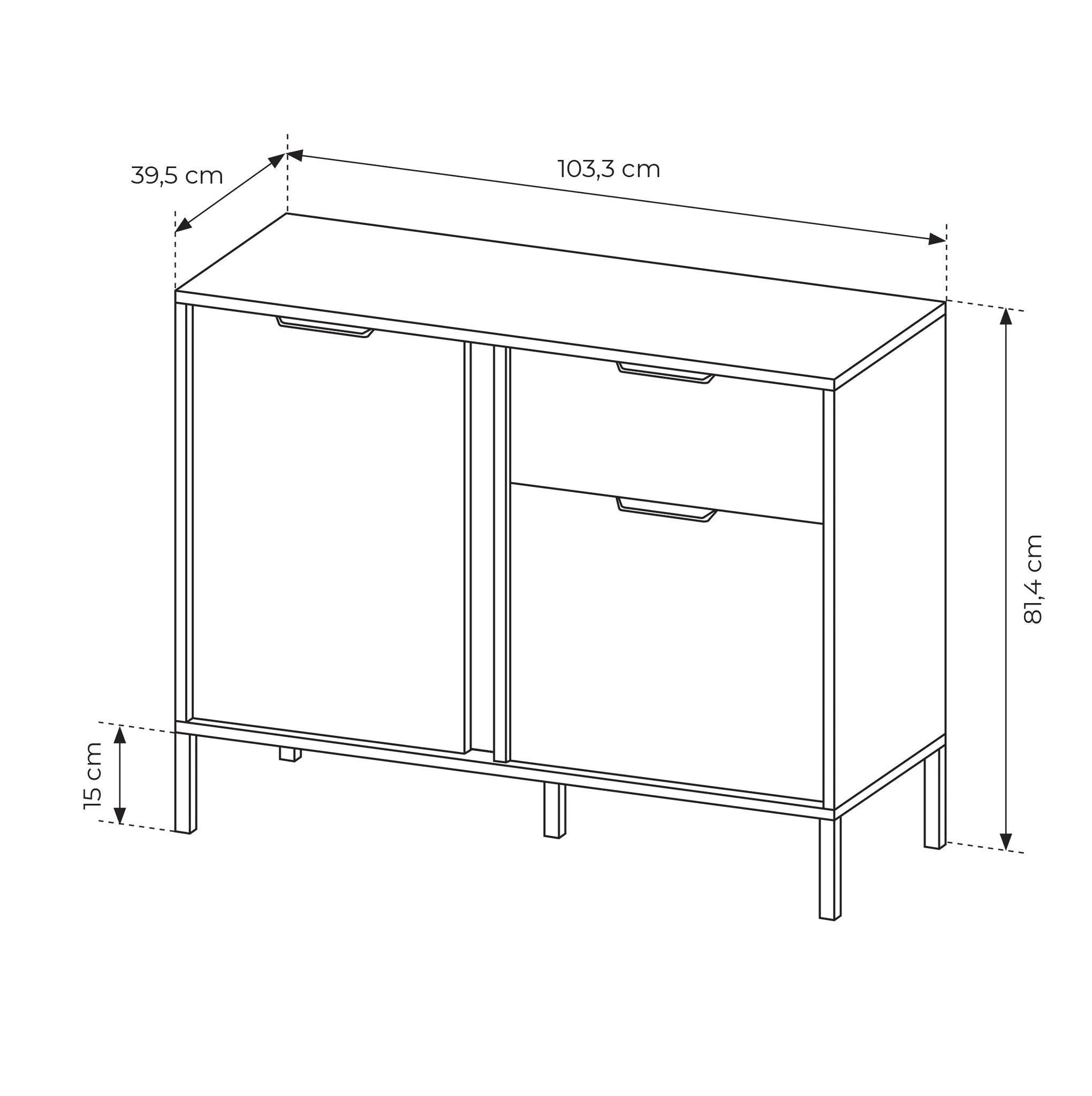 AX LIVING Catanian 103 2D1S - Kommode mit Schublade, 103,3 cm breit
