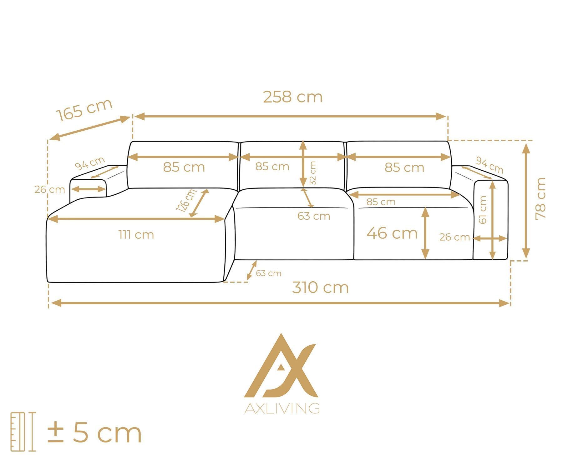 AX LIVING Couch in L Form Corlu Sofa Grau für Wohnzimmer 310 cm L