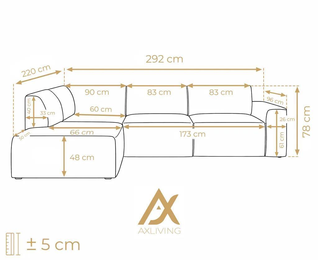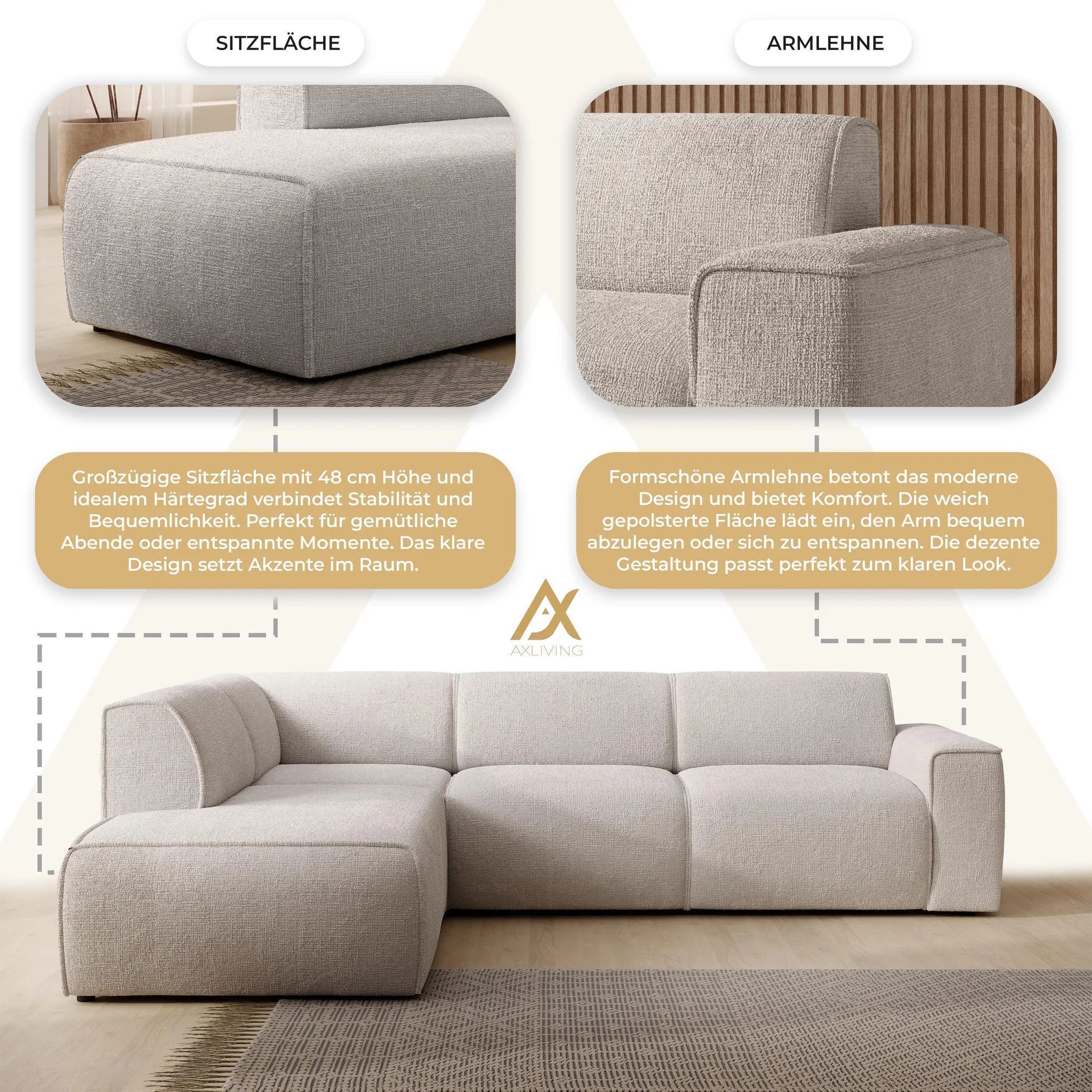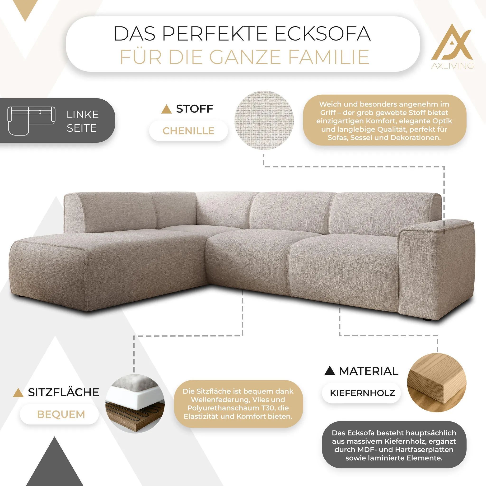 AX LIVING Couch Sofa L Form Didim L Creme - 292 cm stilvoll & bequem L
