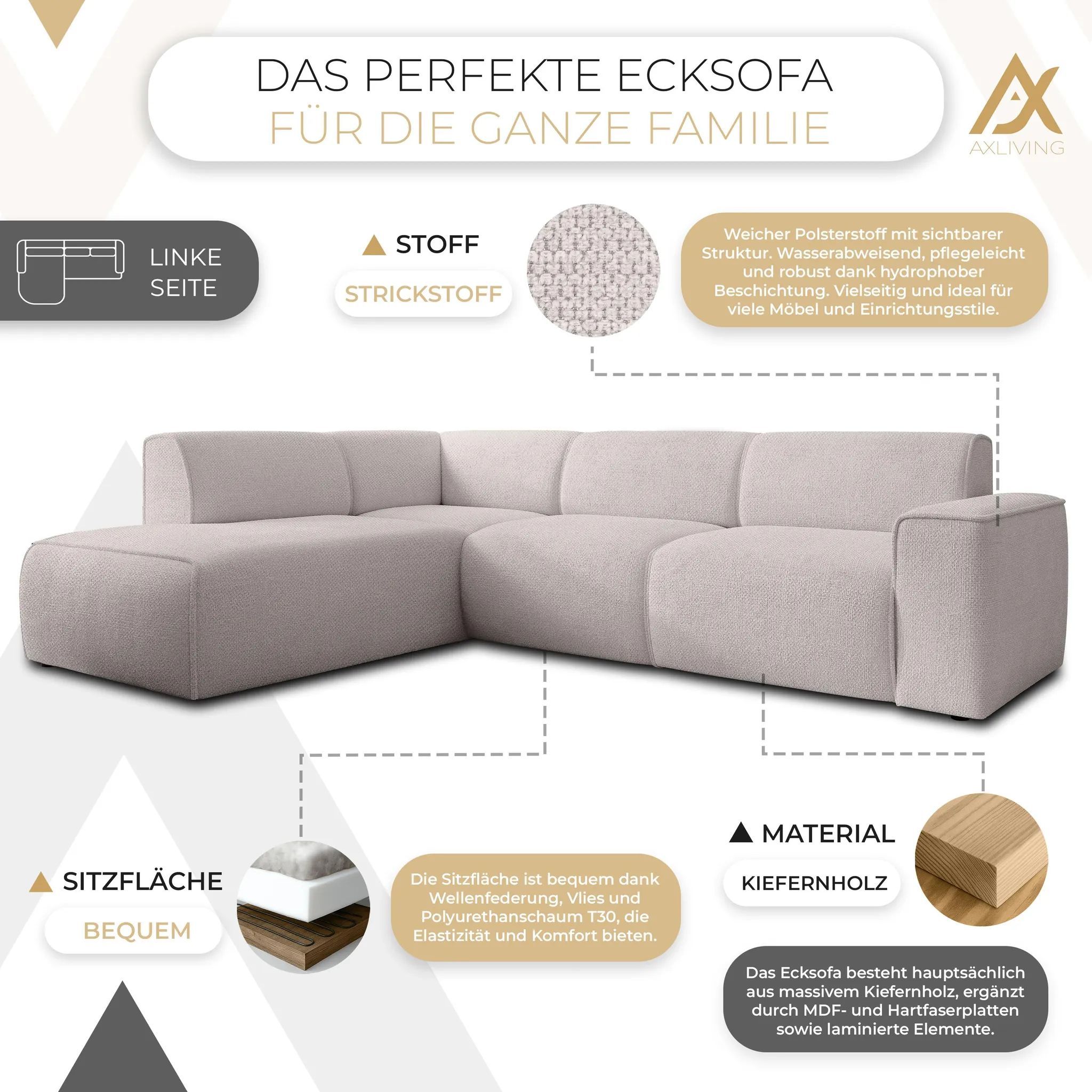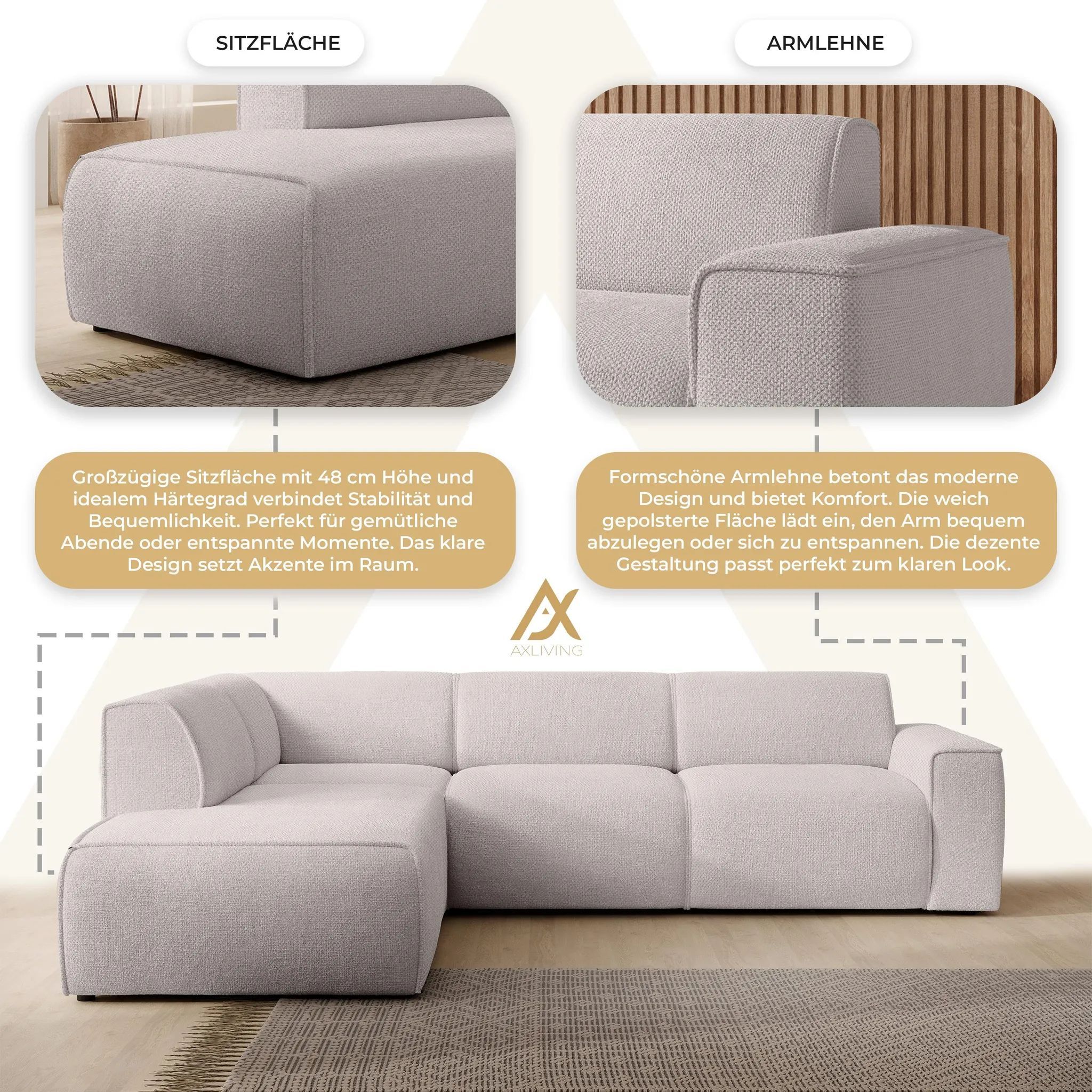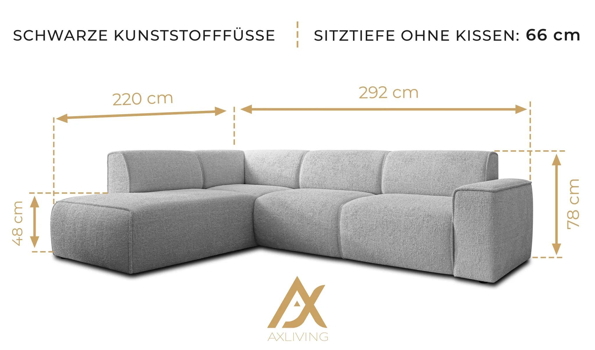 AX LIVING Couch Sofa L Form Didim L Creme - 292 cm, stilvoll & bequem L