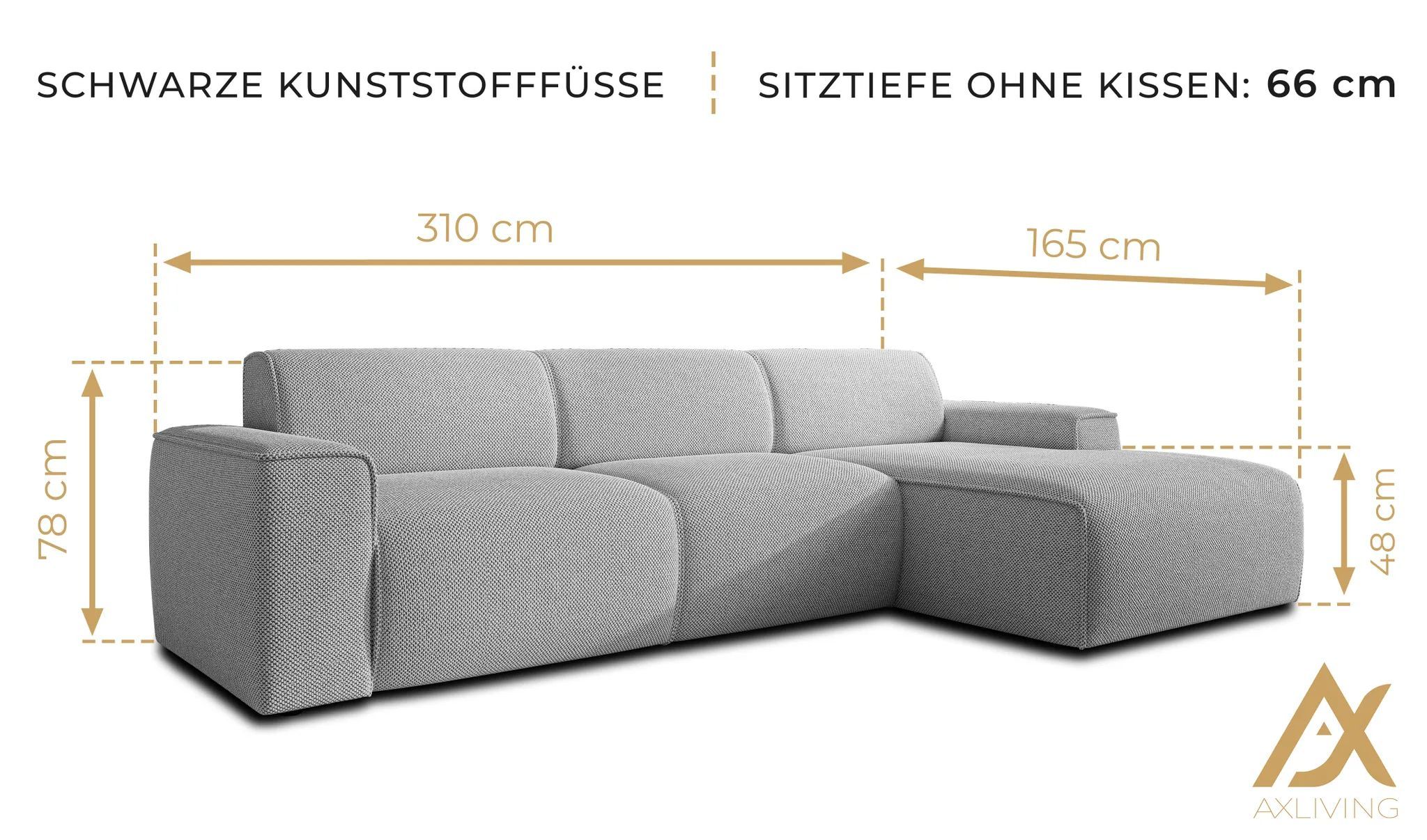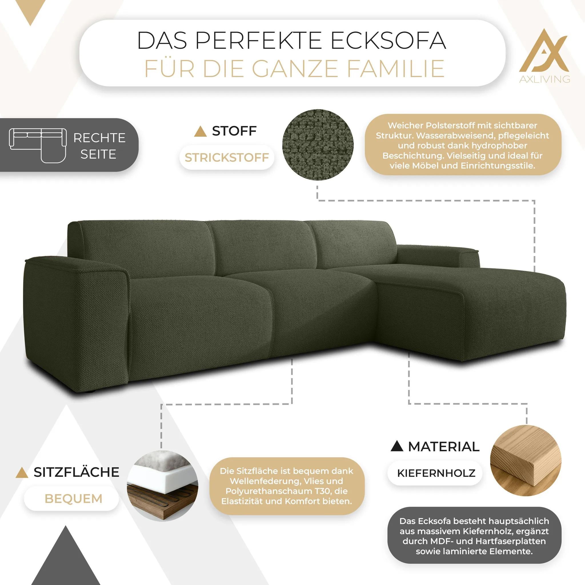 AX LIVING Couch Sofa L Form Didim mini Grün 310 cm breit, stilvoll R