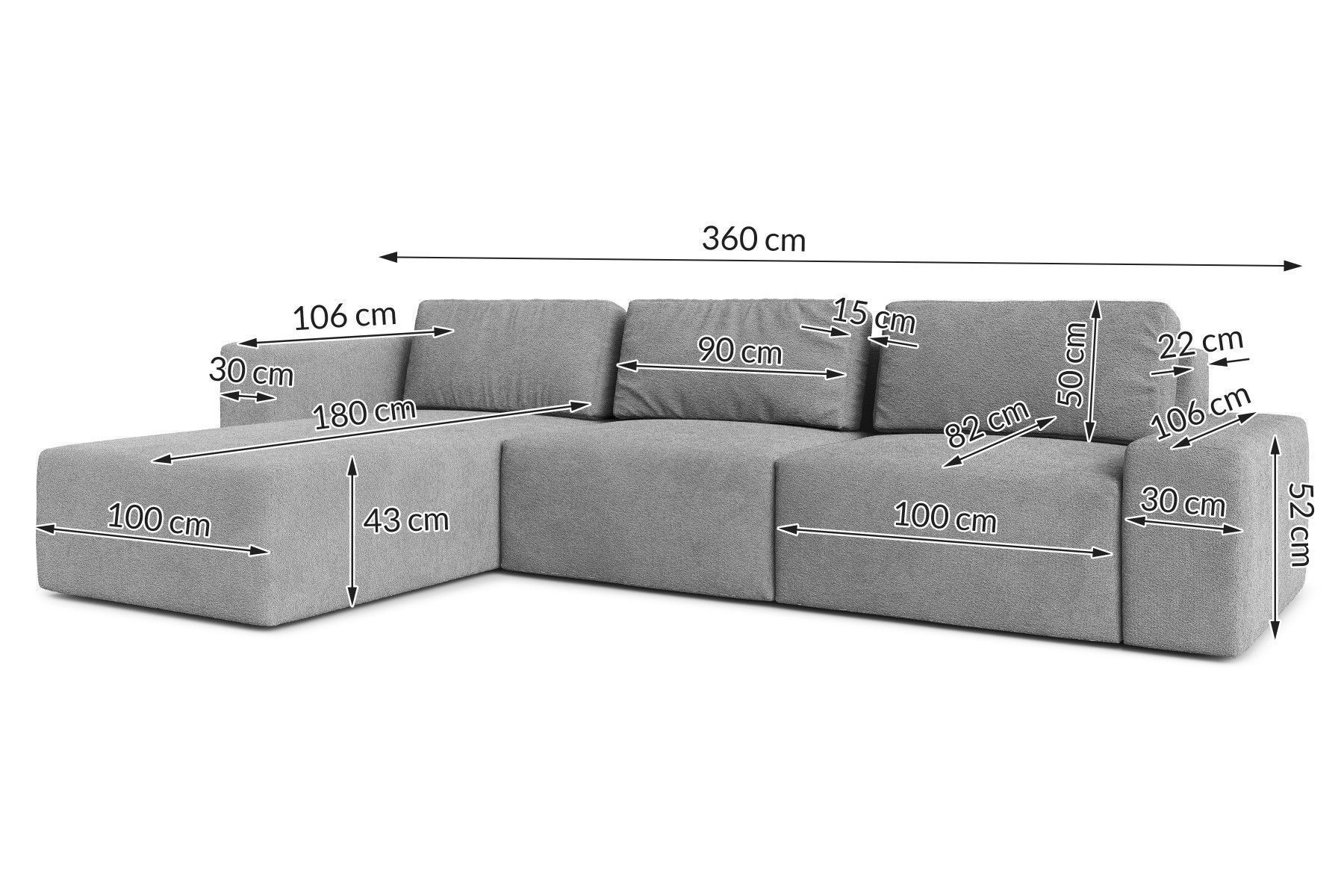 AX LIVING Couch XXL L Form Arkleton Eckcouch Grün 360cm - Komfort R