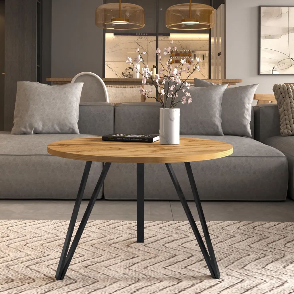 AX LIVING Couchtisch rund Cossie 67cm, Eiche, Schwarzes Metallgestell