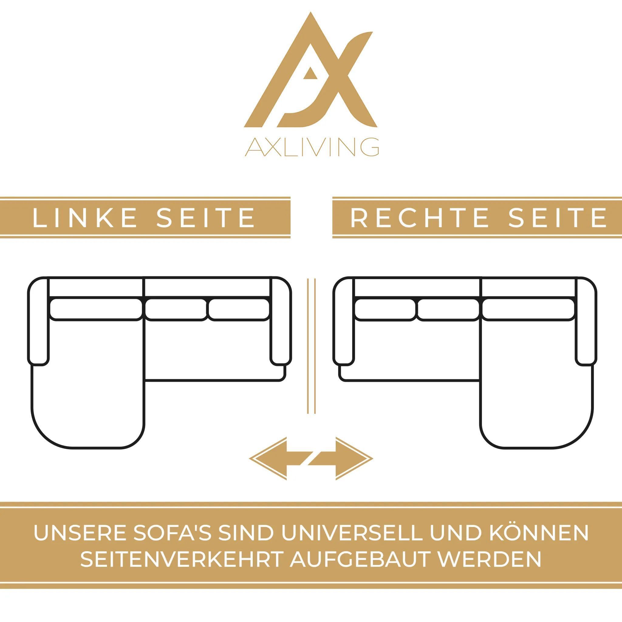 AX LIVING Eckcouch mit Bettfunktion Tunceli Grau - 297 cm breit Modern