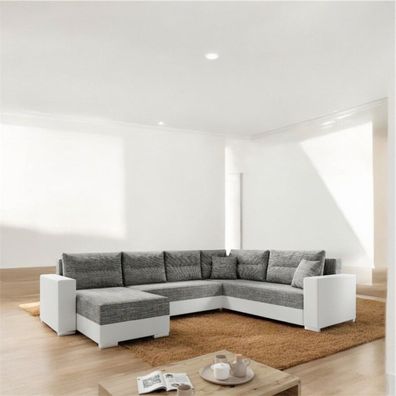 • AX LIVING Lovere ecksofas groß 314 cm weiß grau - Wohnlandschaft mit Schlaffunktion