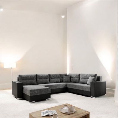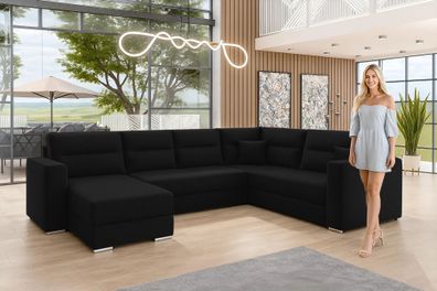 • AX LIVING Ecksofas groß Ferrande 317 cm - Sofa schwarz mit Schlaffunktion & Struktur
