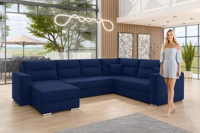 • AX LIVING Ecksofas groß Lovere 314 cm - Sofa blau mit Schlaffunktion & Strukturstoff