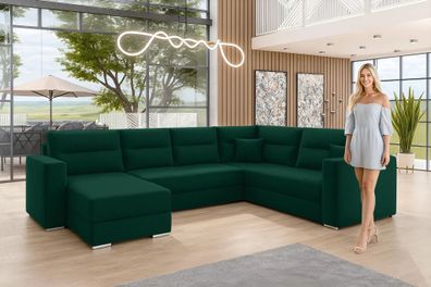 • AX LIVING Ecksofas groß Lovere 314 cm - Sofa dunkelgrün mit Schlaffunktion & Samt