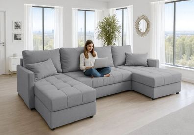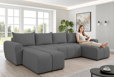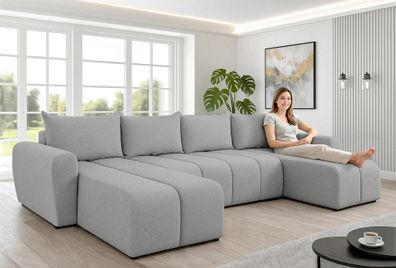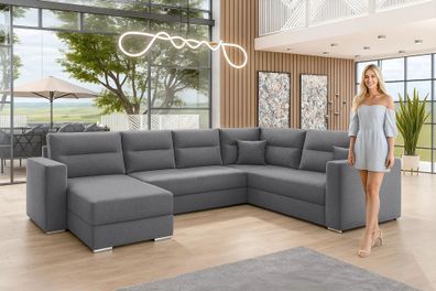 • AX LIVING Ecksofas groß Lovere 314 cm - Sofa grau mit Schlaffunktion & Strukturstoff