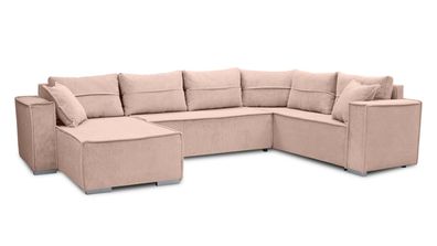• AX LIVING Ecksofas groß Lovere 314 cm - Sofa rosa mit Schlaffunktion & Strukturstoff