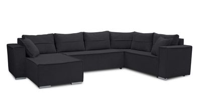 • AX LIVING Ecksofas groß Lovere 314 cm - Sofa schwarz mit Schlaffunktion & Samt