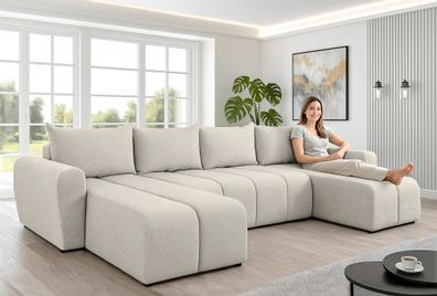 • AX LIVING Ecksofas groß Ferrande 317 cm - Sofa beige mit Schlaffunktion & Struktur
