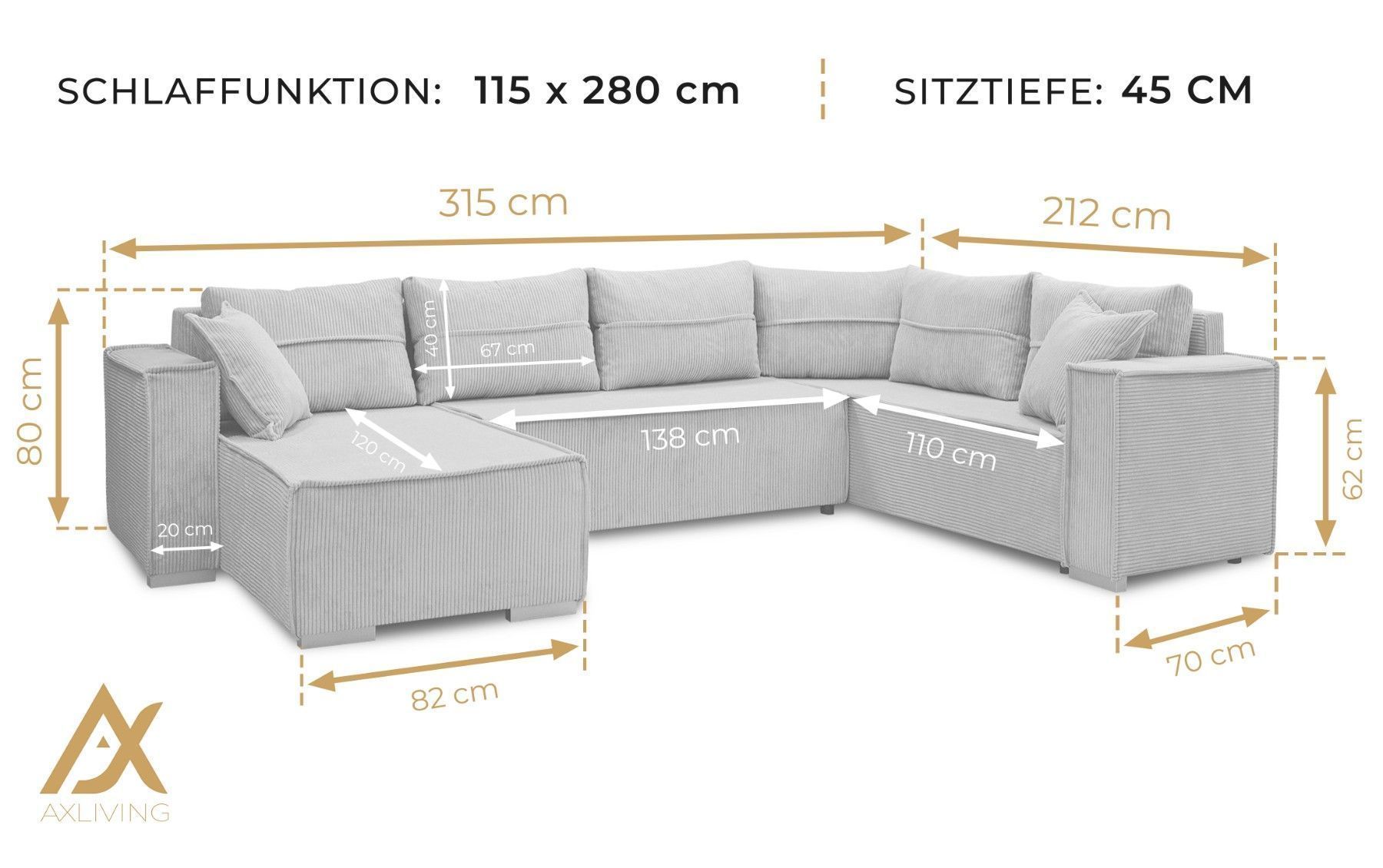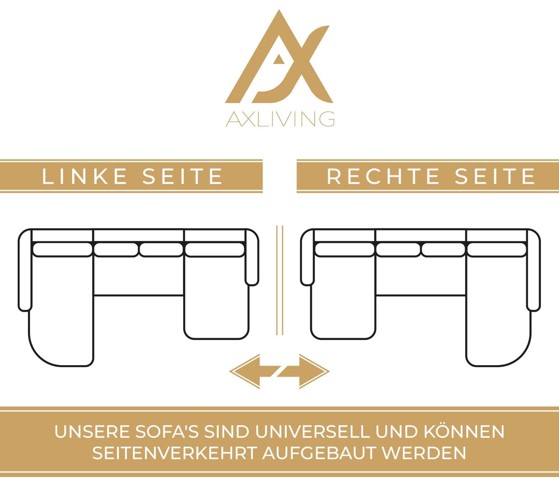 AX LIVING Ecksofas groß Lovere 314 cm - Sofa beige mit Schlaffunktion & Strukturstoff