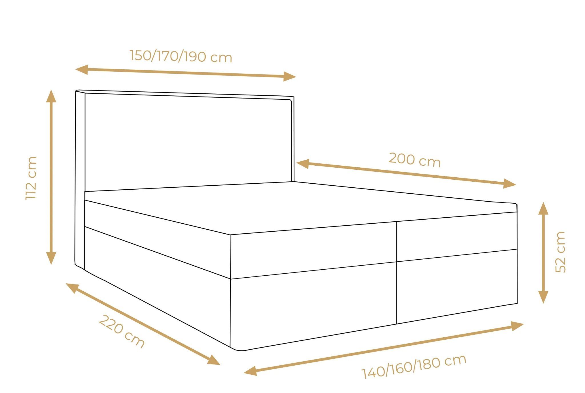 AX LIVING Follonica 140 x 200 Boxspringbett Rosa - Breite 150 cm, edler Look