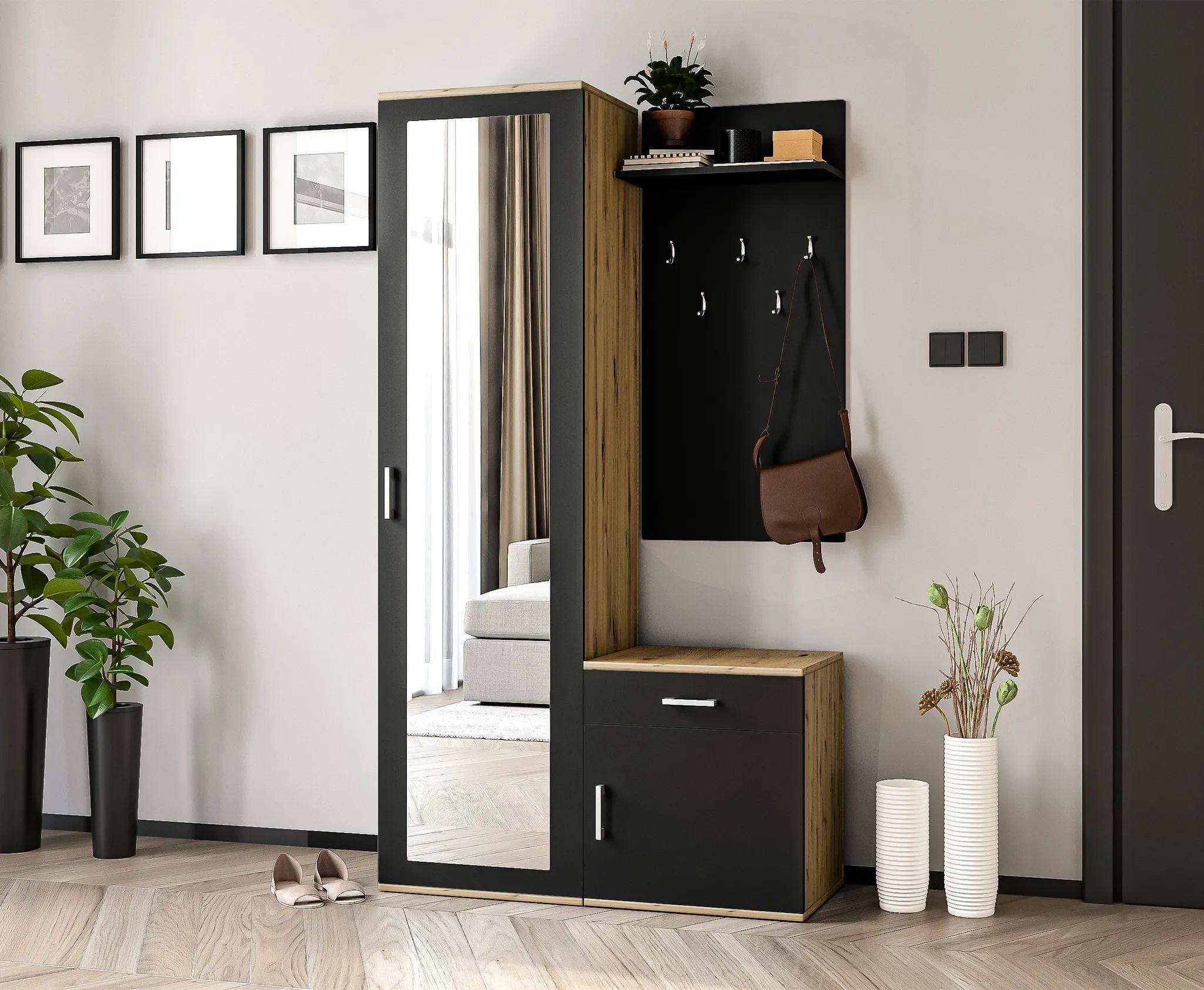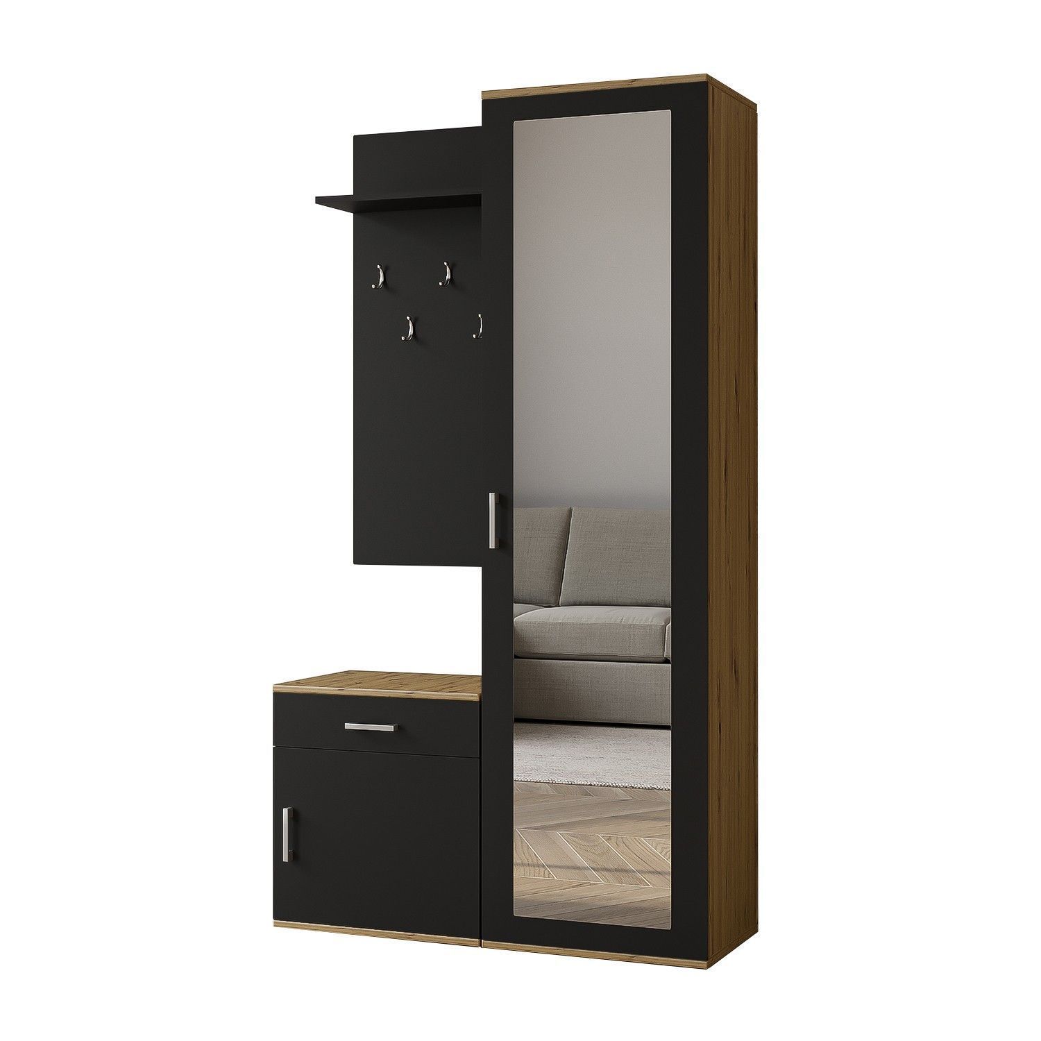 AX Living Garderobe mit Spiegel Magnola - 100 cm Breit, Artisan & Schwarz