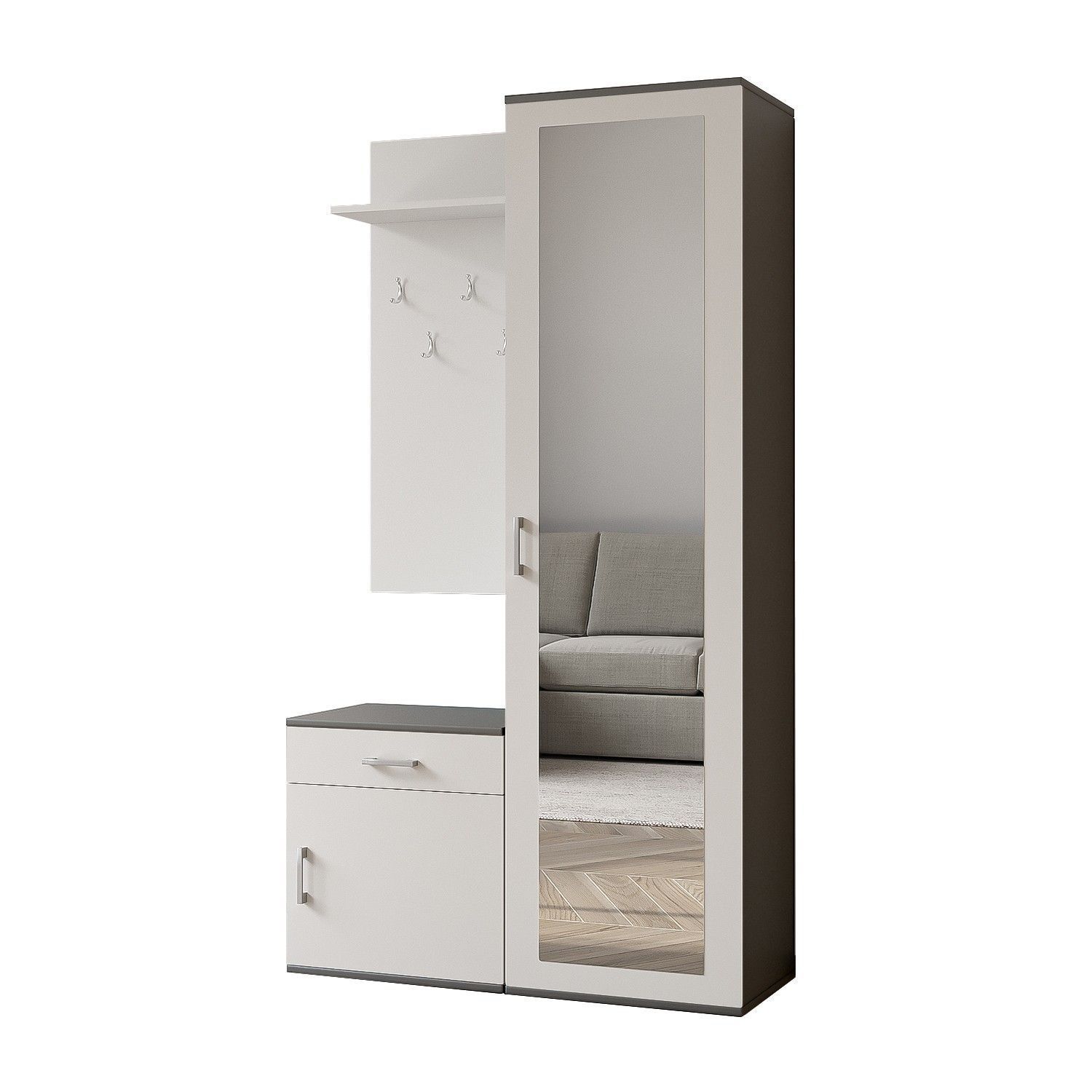 AX Living Garderobe mit Spiegel Magnola - 100 cm Breit, Grau & Weiß