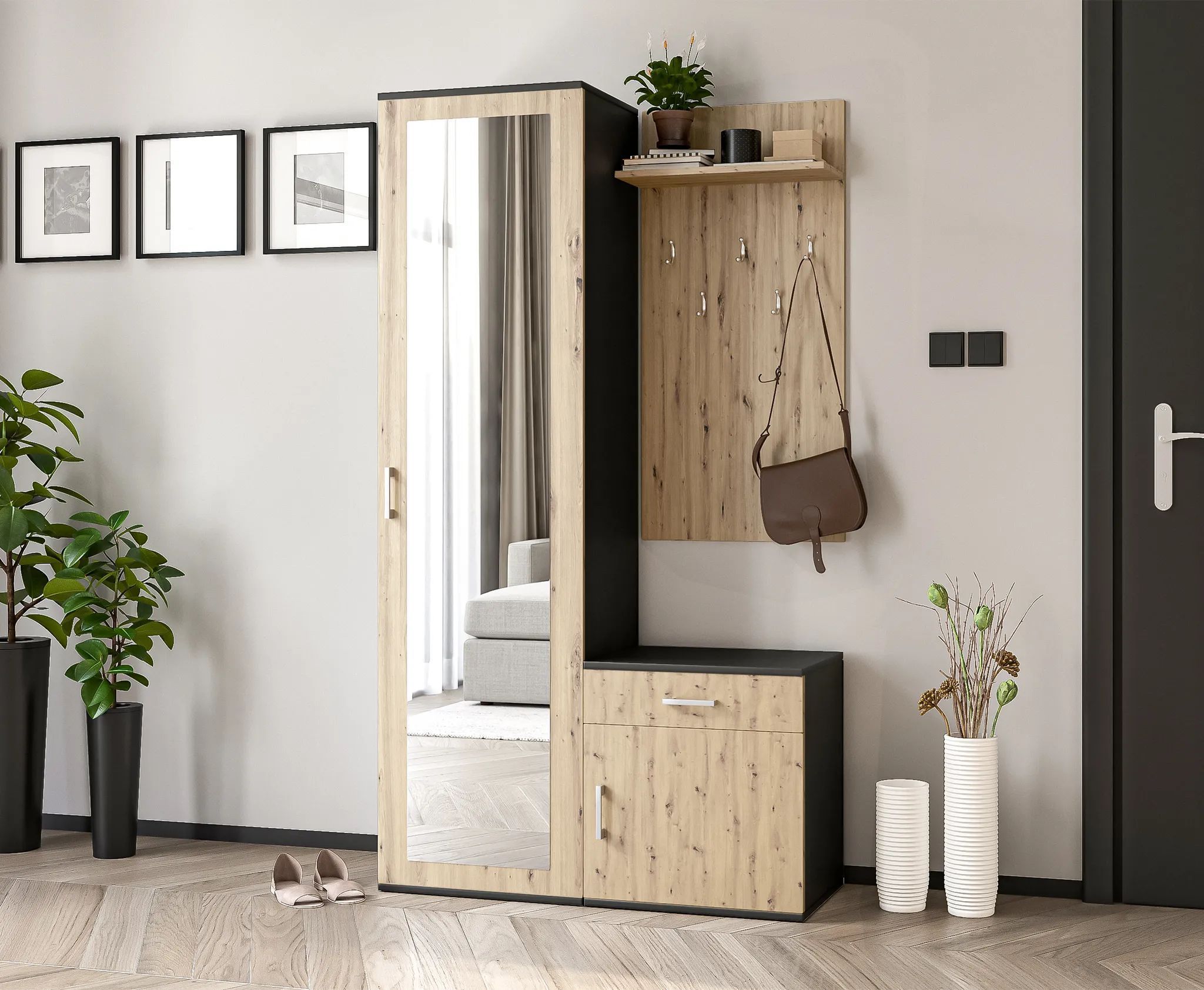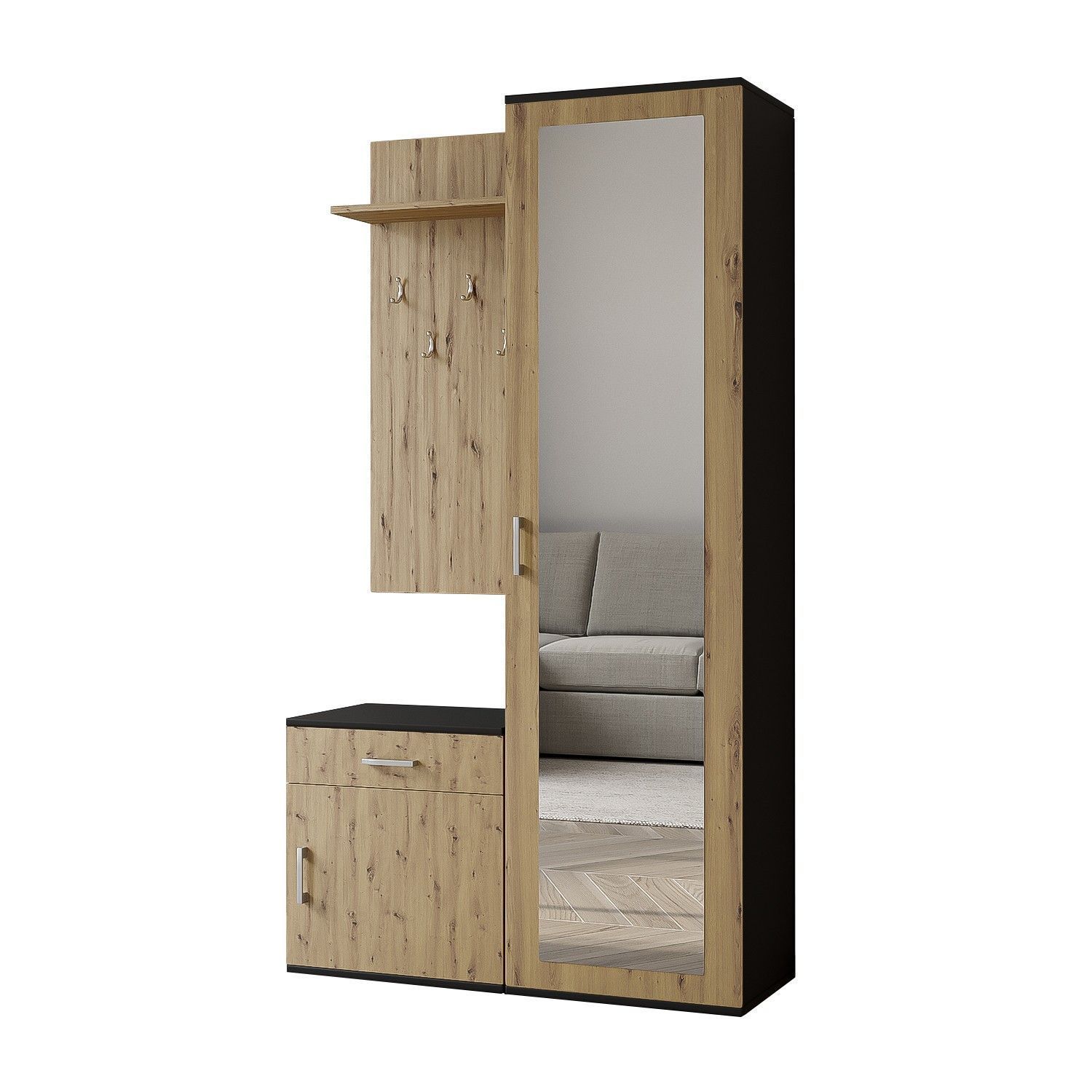 AX Living Garderobe mit Spiegel Magnola - 100 cm Breit, Schwarz & Artisan