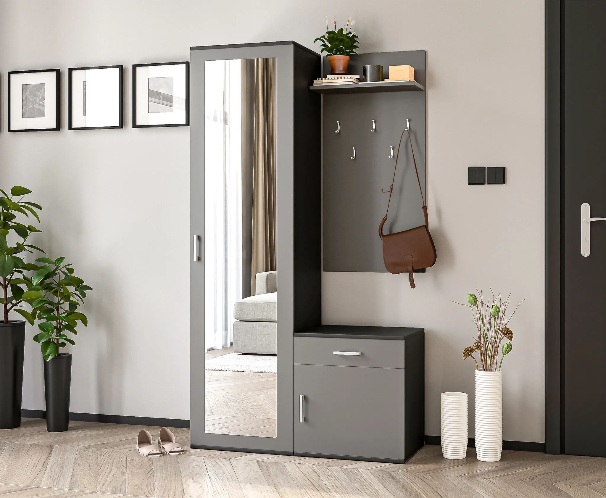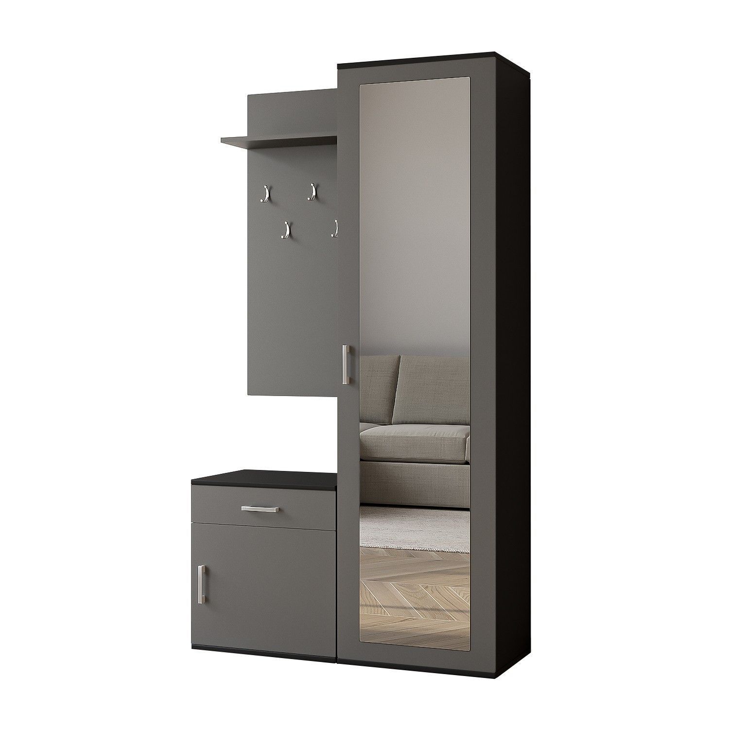 AX Living Garderobe mit Spiegel Magnola - 100 cm Breit, Schwarz & Grau
