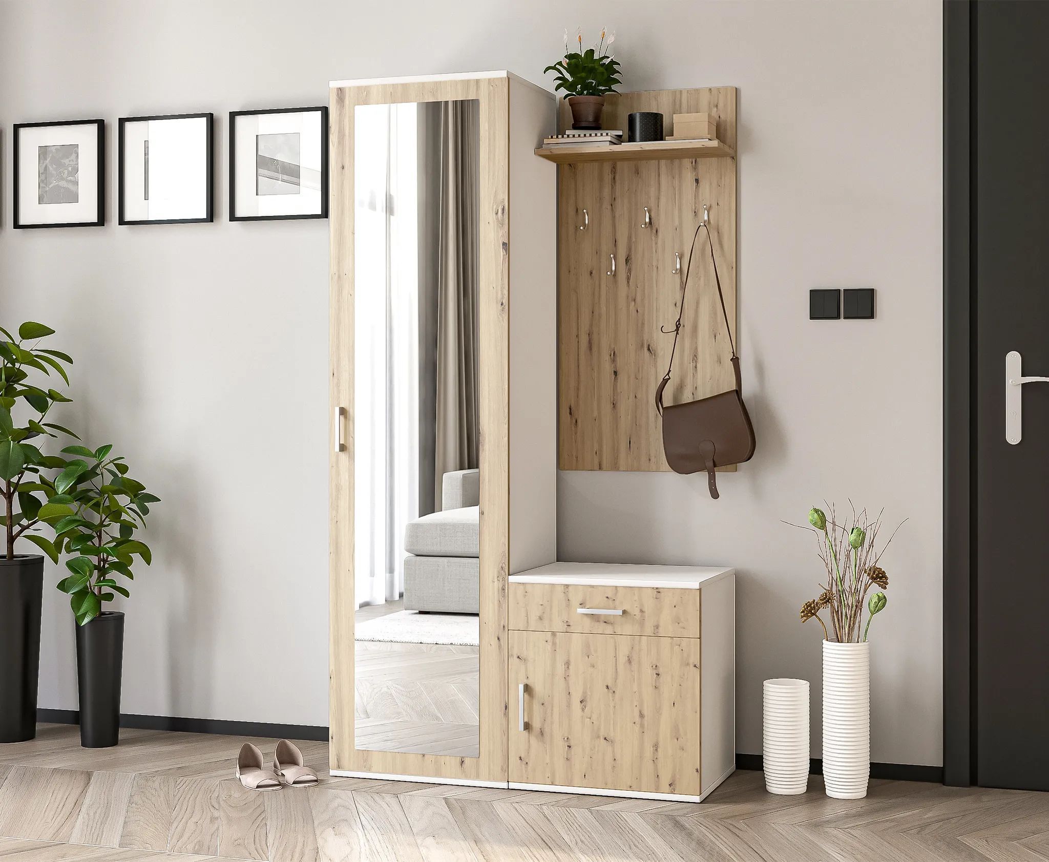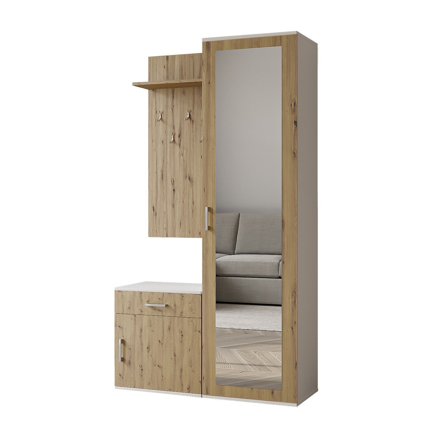 AX Living Garderobe mit Spiegel Magnola - 100 cm Breit, Weiß & Artisan