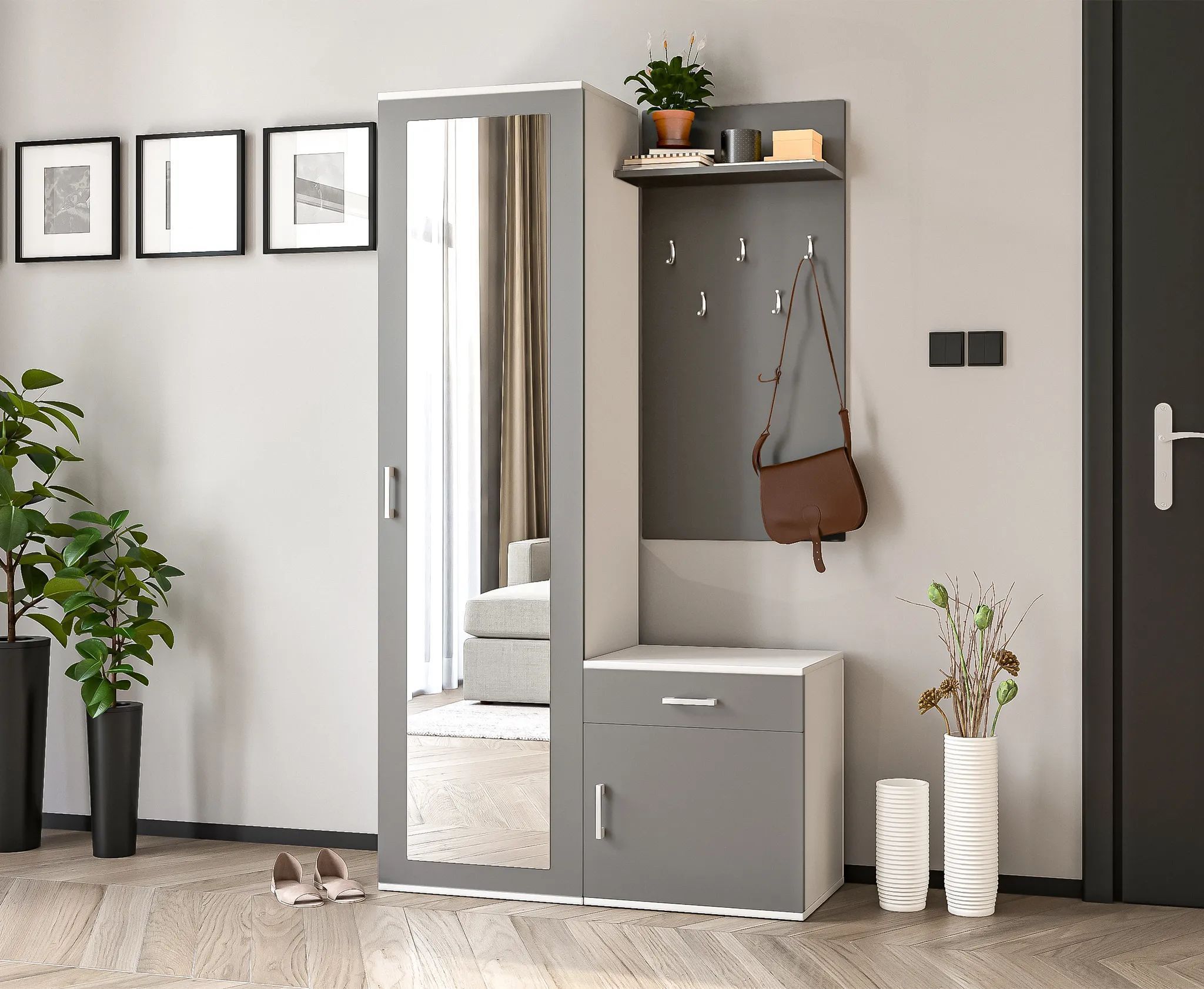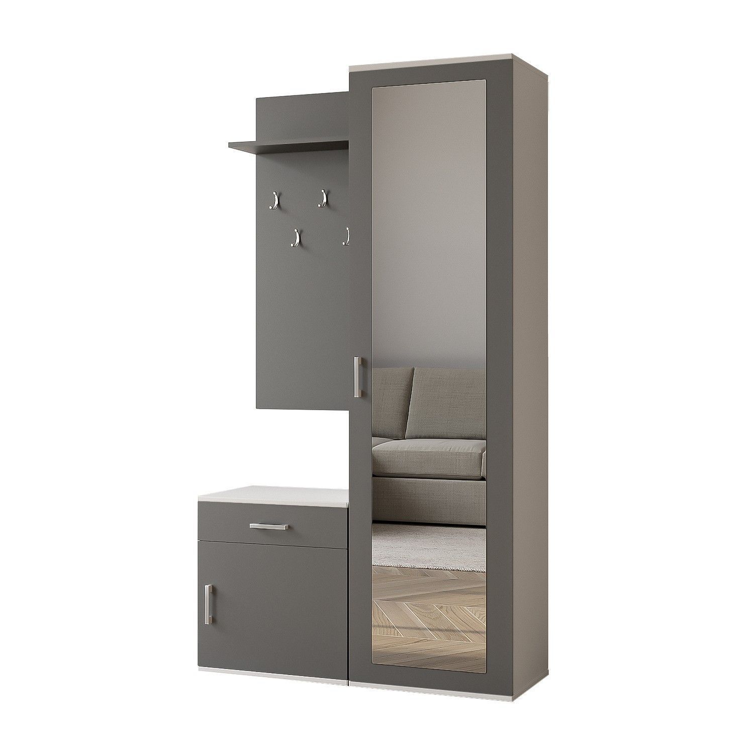 AX Living Garderobe mit Spiegel Magnola - 100 cm Breit, Weiß & Grau