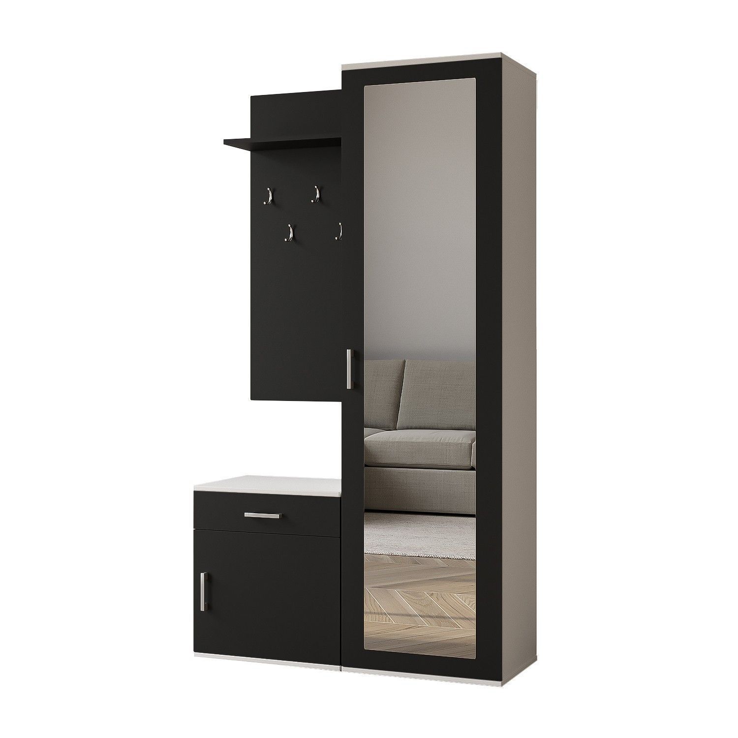AX Living Garderobe mit Spiegel Magnola - 100 cm Breit, Weiß & Schwarz