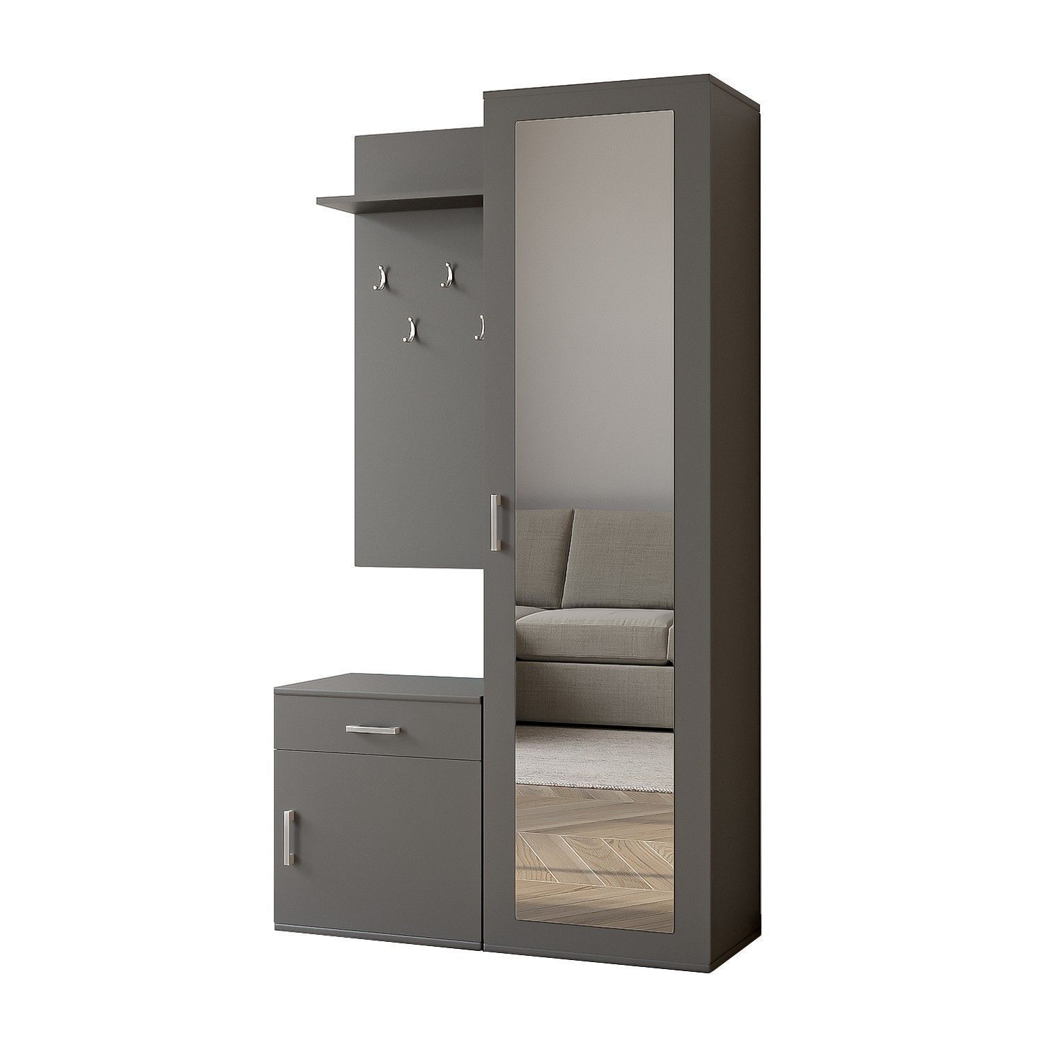 AX Living Garderoben Set Grau Magnola - 100cm stilvoll & funktional