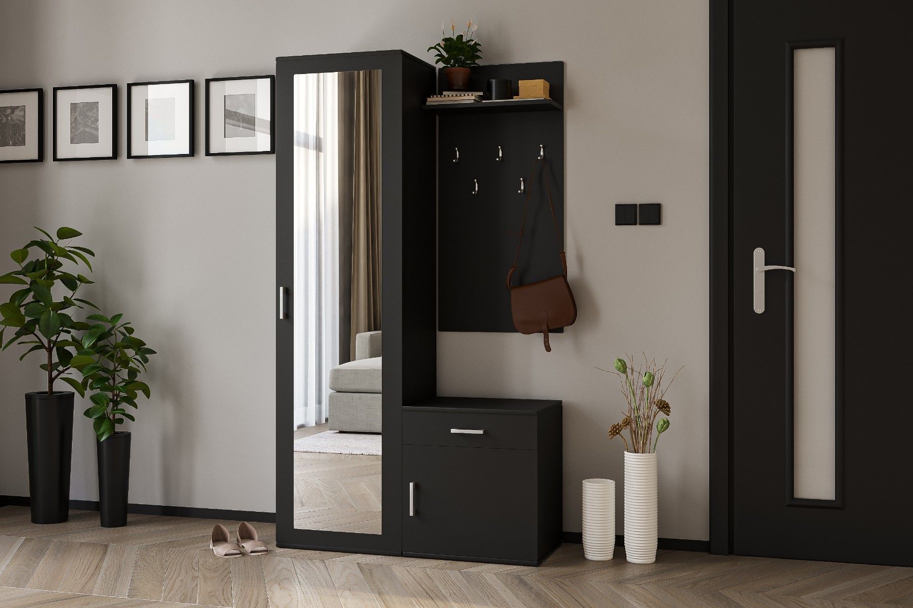 AX Living Garderoben Set Schwarz Magnola - 100cm stilvoll & funktional
