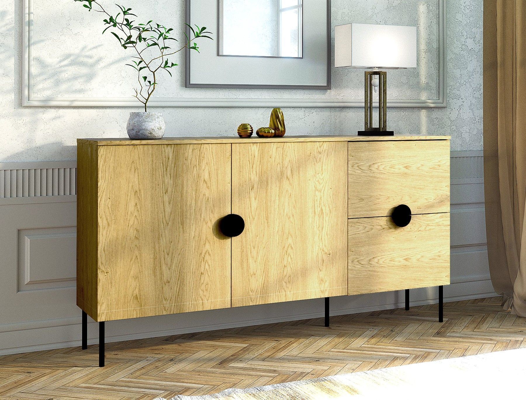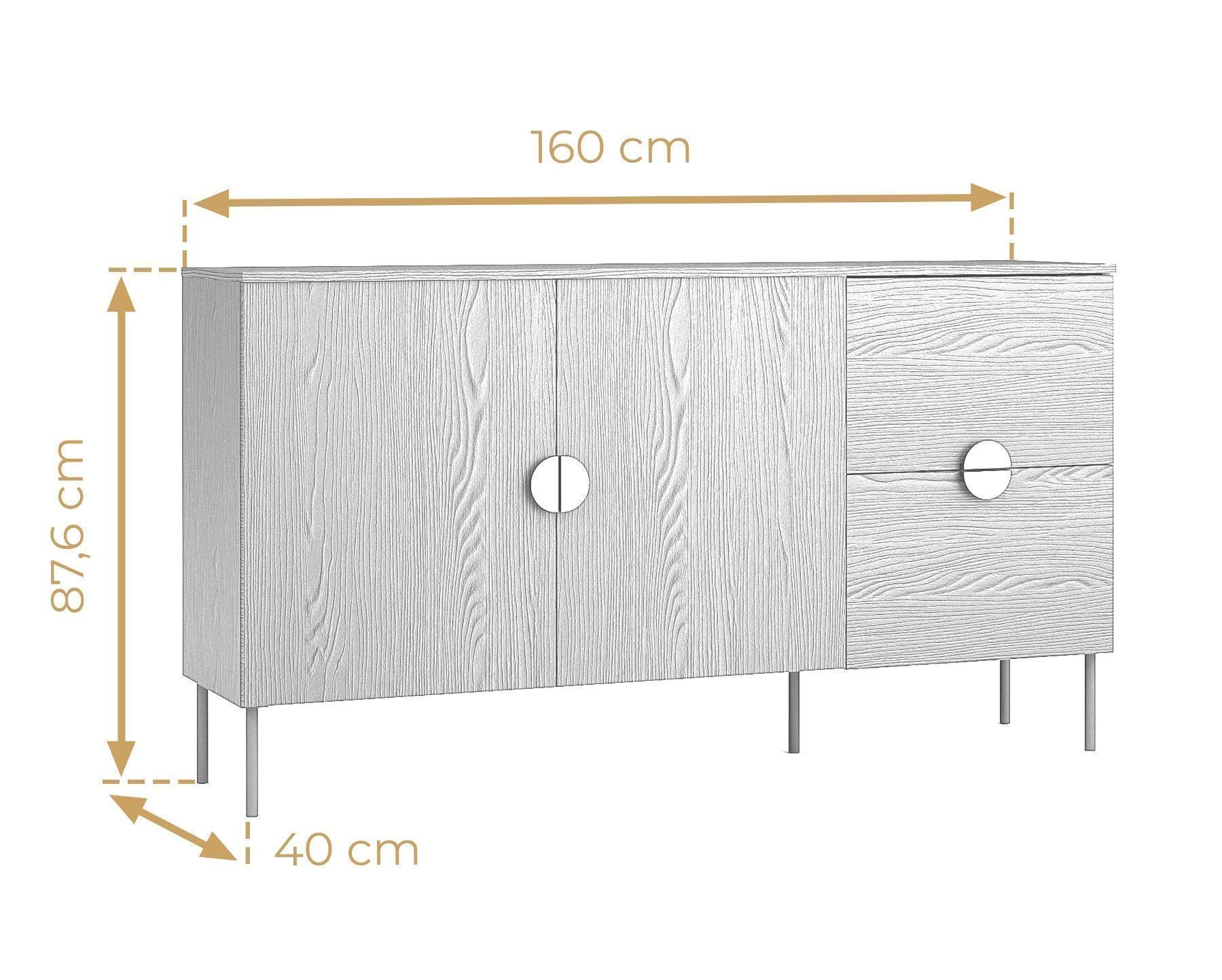 AX Living Große Kommode Brunelli 160 cm Eiche Baltic Kommode modern