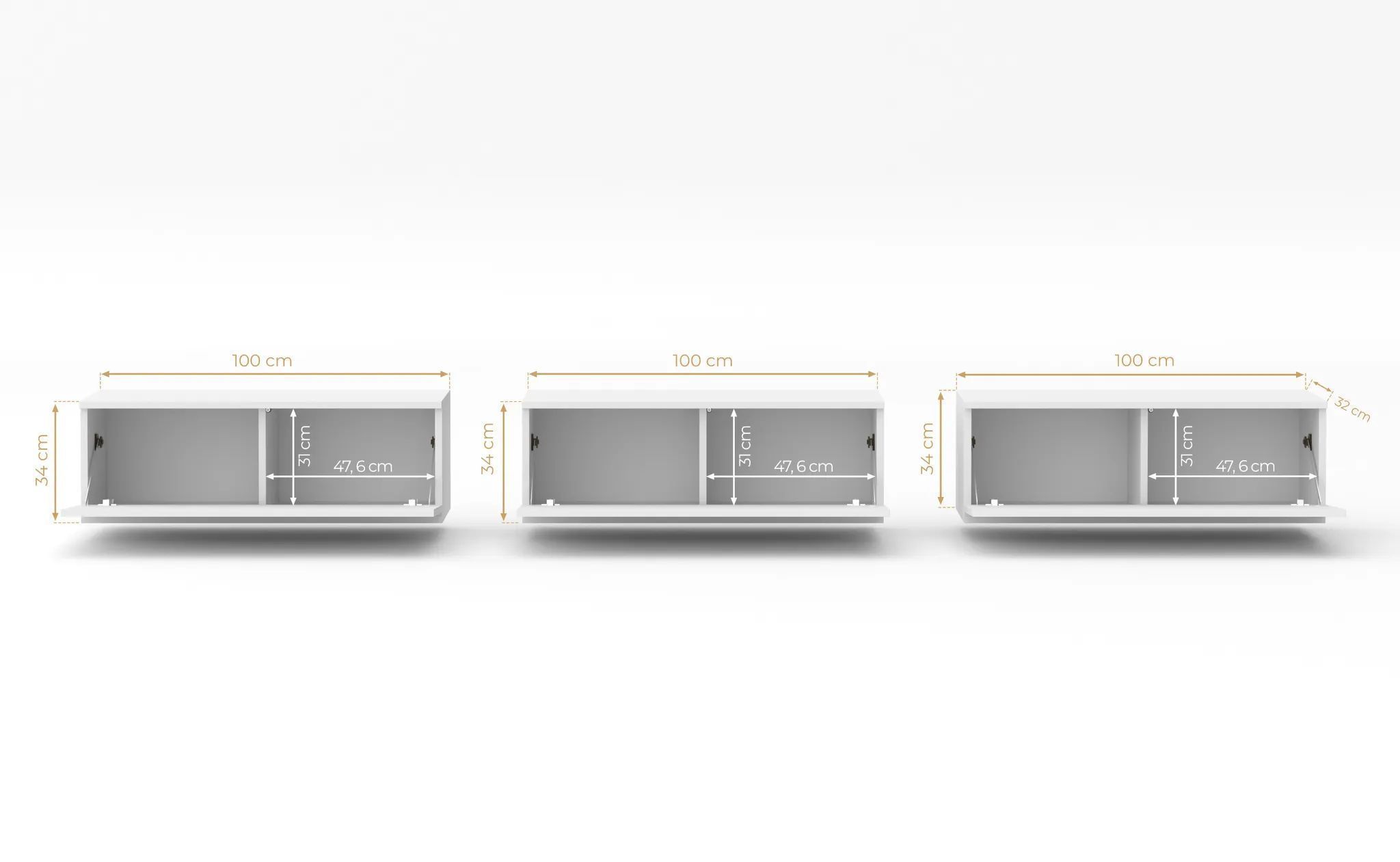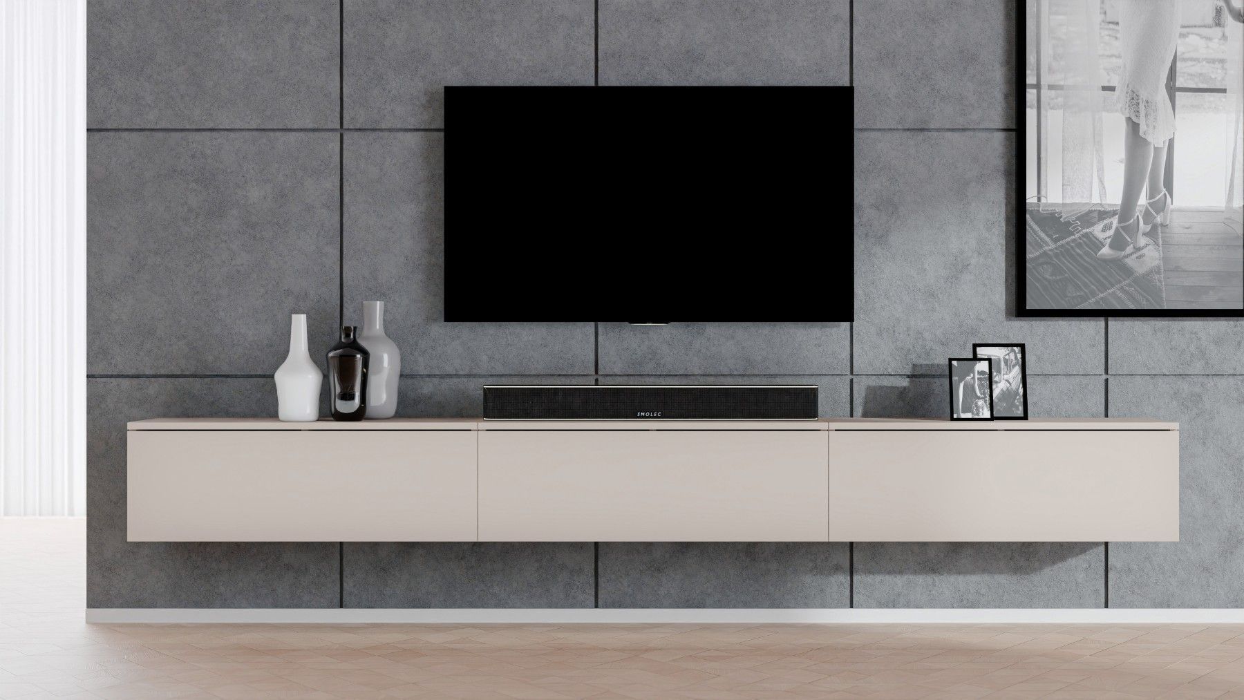 AX LIVING hängendes TV Board beige Loriano TV Bank 3x100 cm Kaschmir