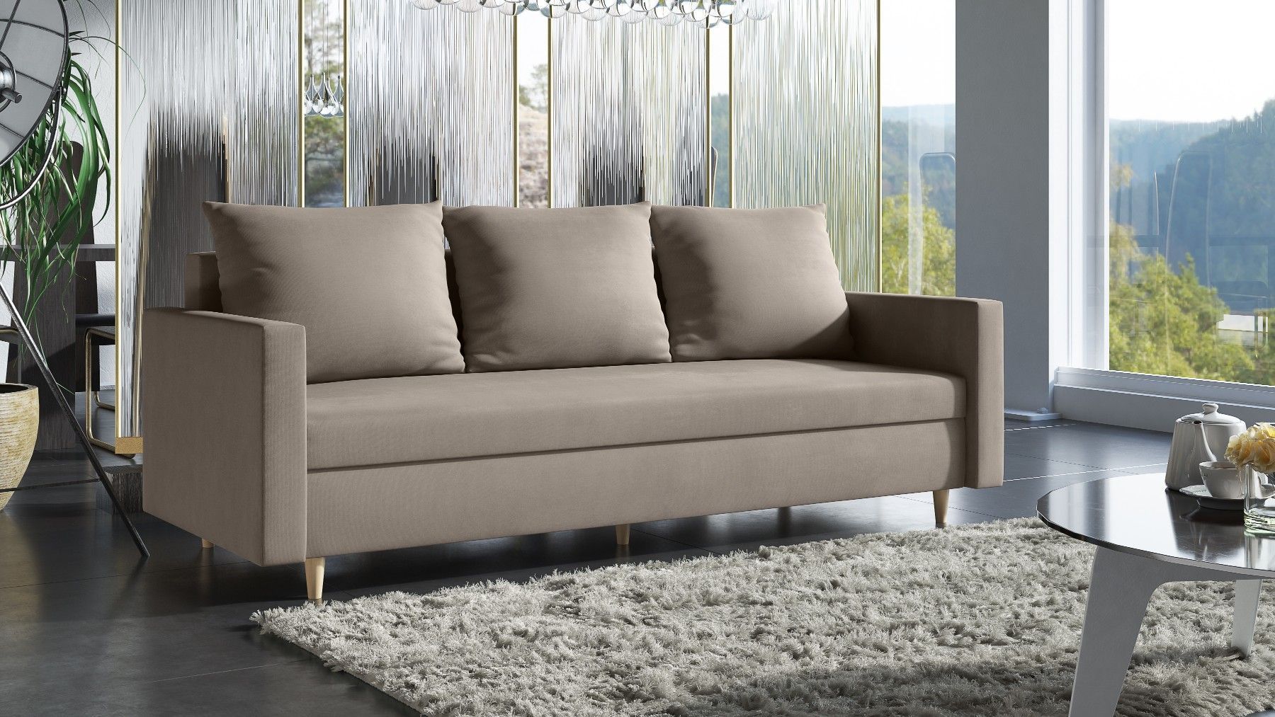 AX LIVING Hyden 3 Sitzer Sofa mit Schlaffunktion - 222 cm breit, braun