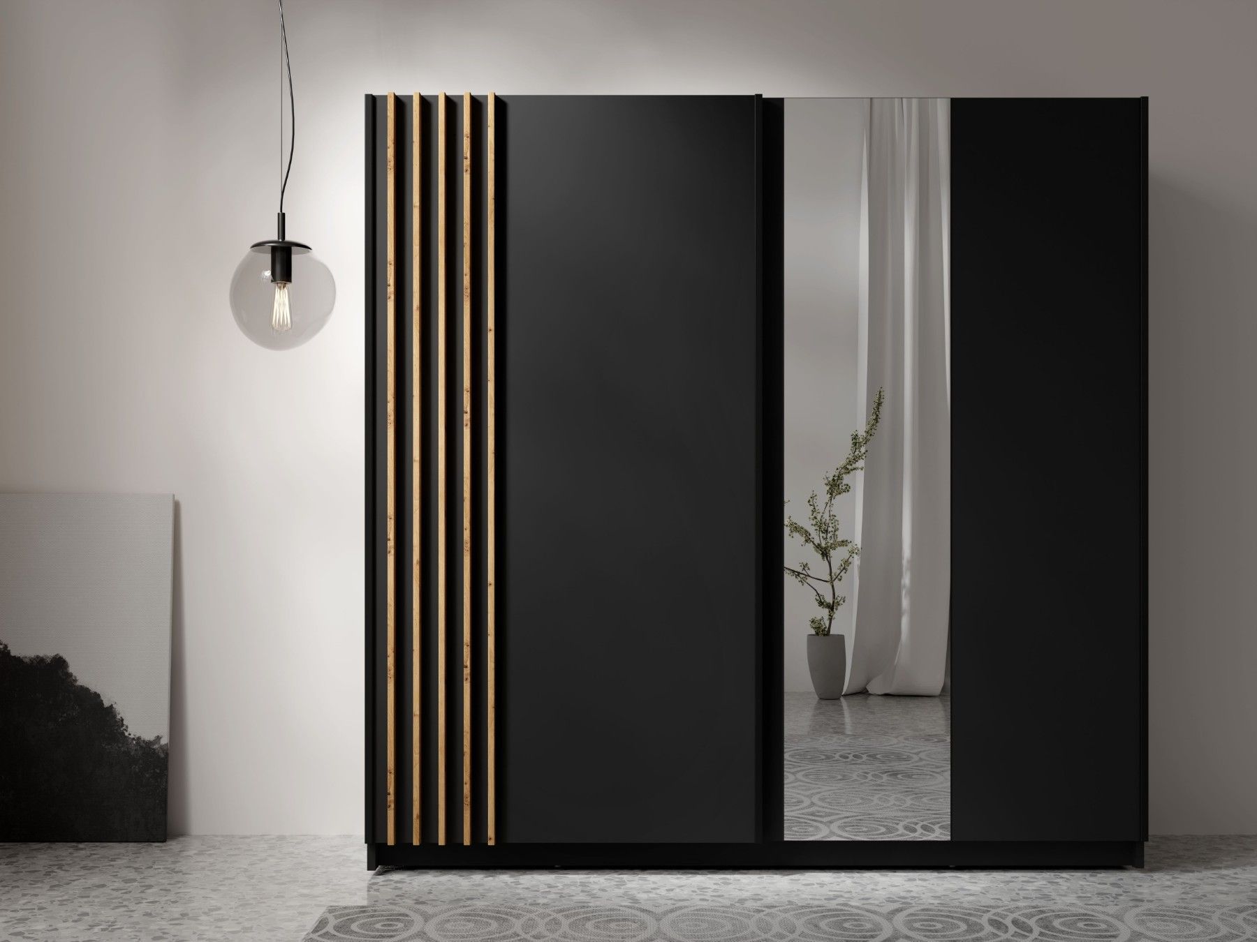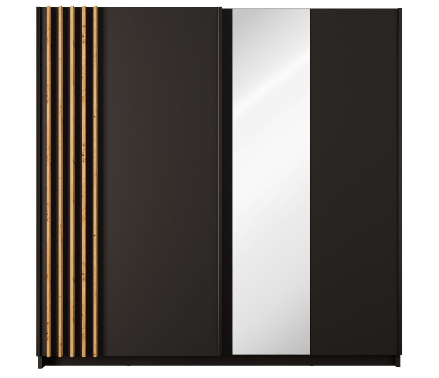 AX Living Kleiderschrank schwarz mit Spiegel 202 cm - Beralto Artisan Lamellen