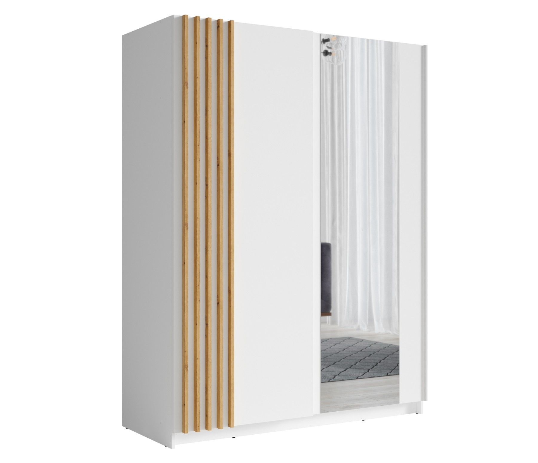 AX Living Kleiderschrank weiß mit Spiegel 200 cm - Beralto mit Lamellen