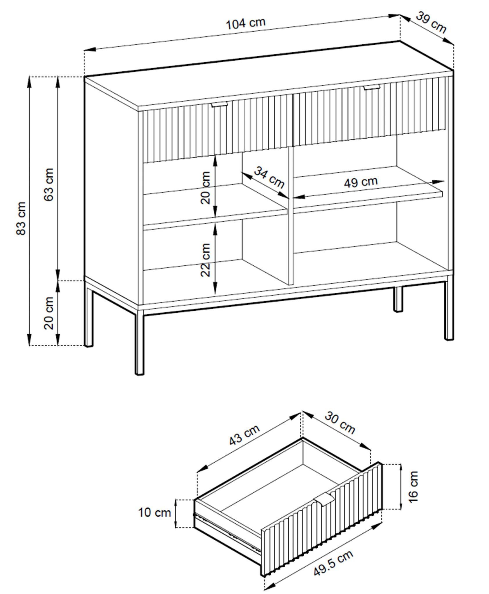 AX LIVING Kommode mit Schublade Eternas KSZ104 104cm breite, Modern in Schwarz