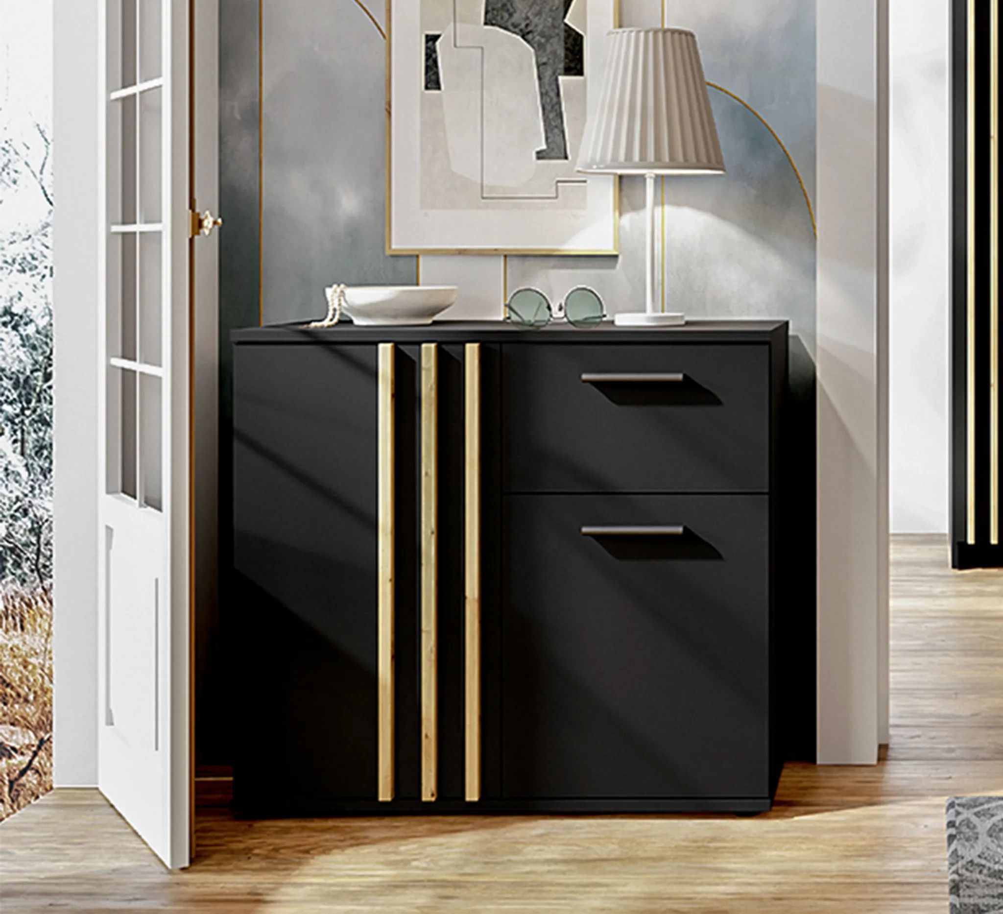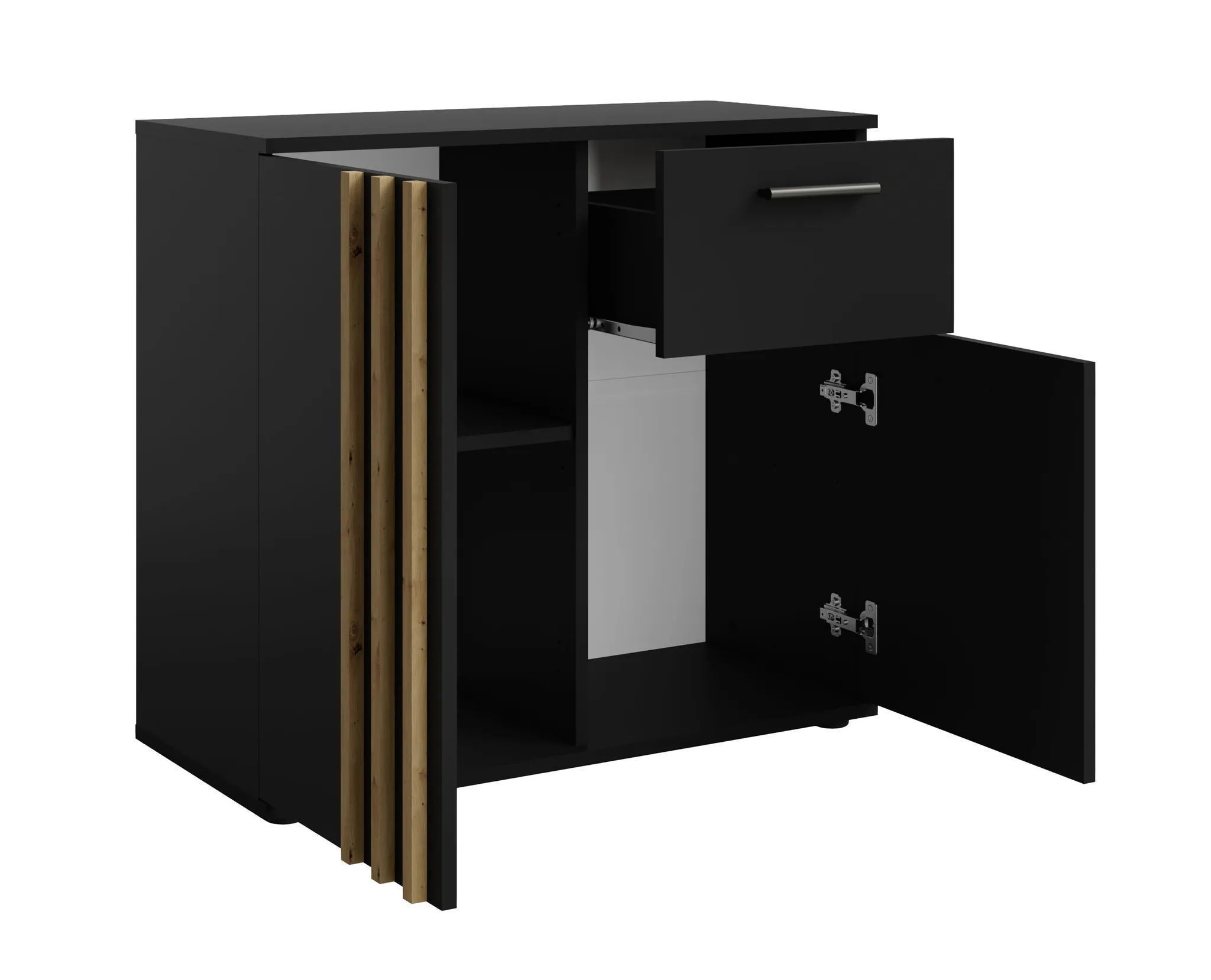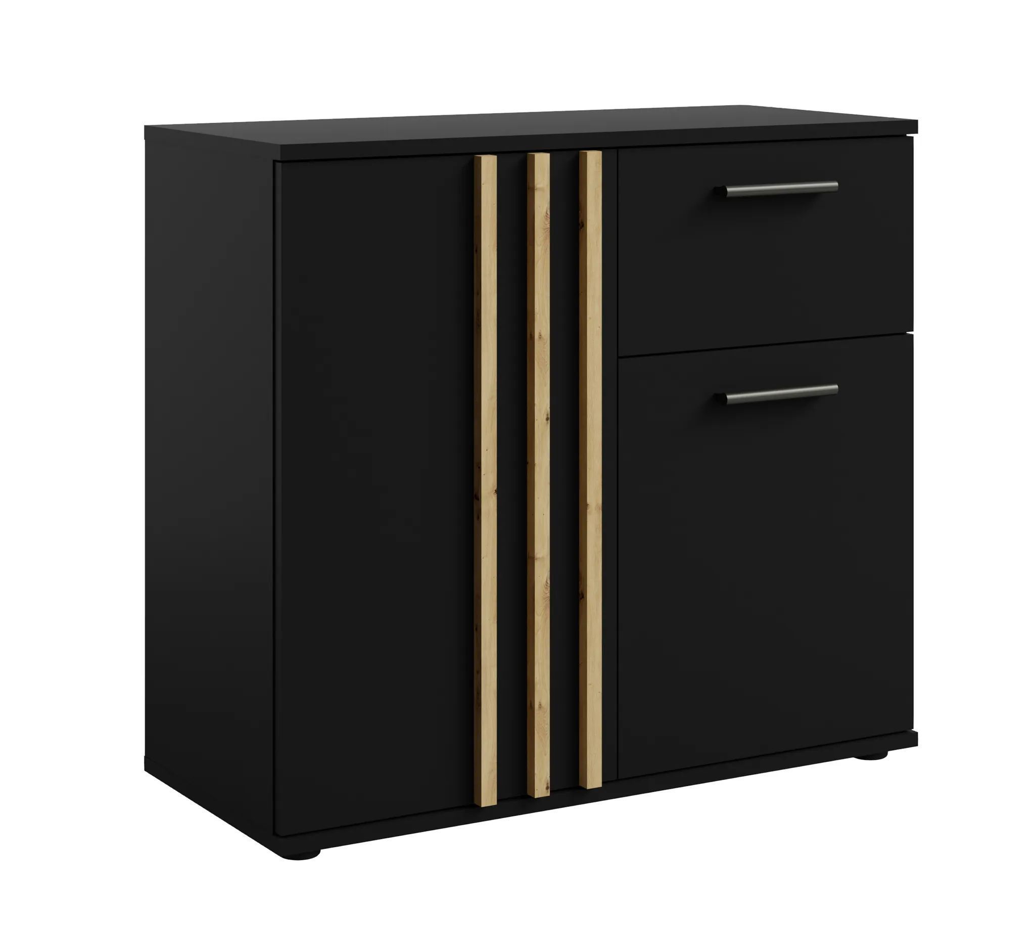 AX LIVING Kommode mit Schublade Turell 2D1SZ - 80 cm Schwarz