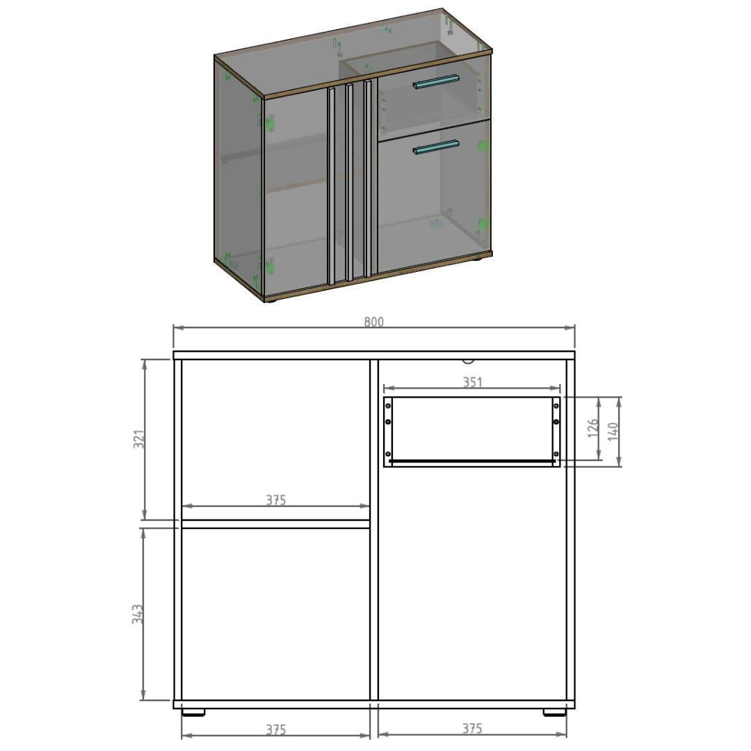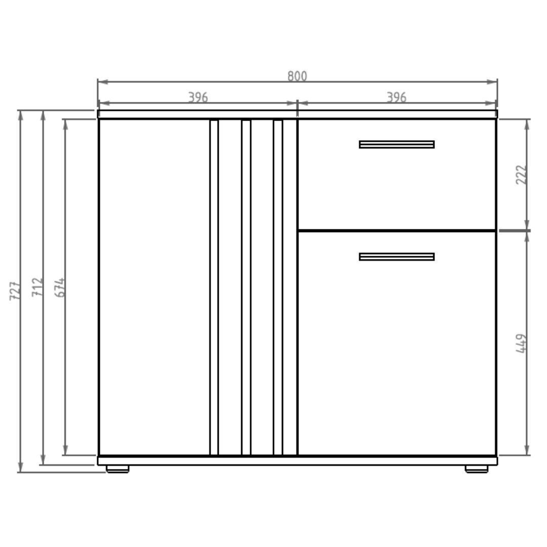 AX LIVING Kommode mit Schublade Turell 2D1SZ - 80 cm Weiß