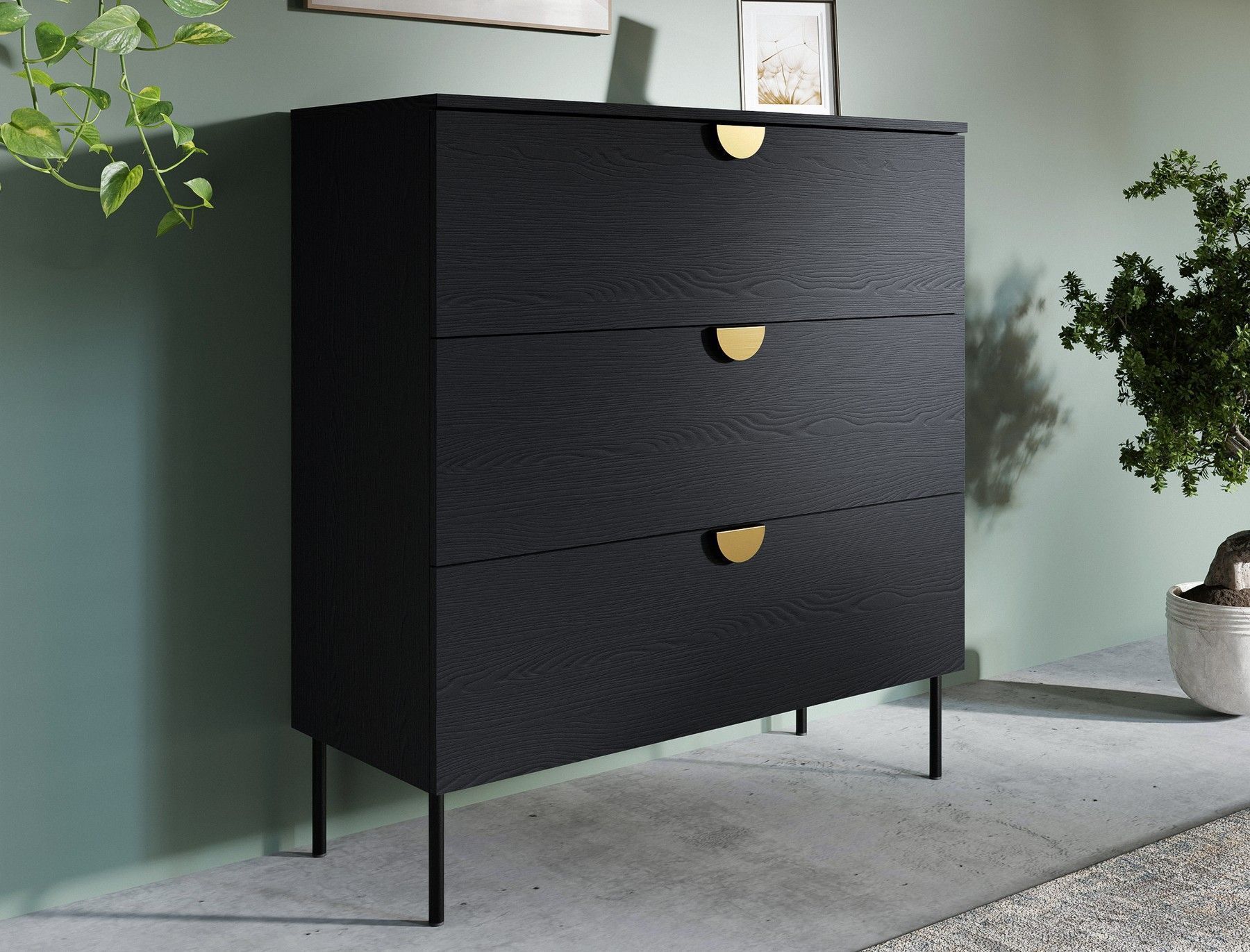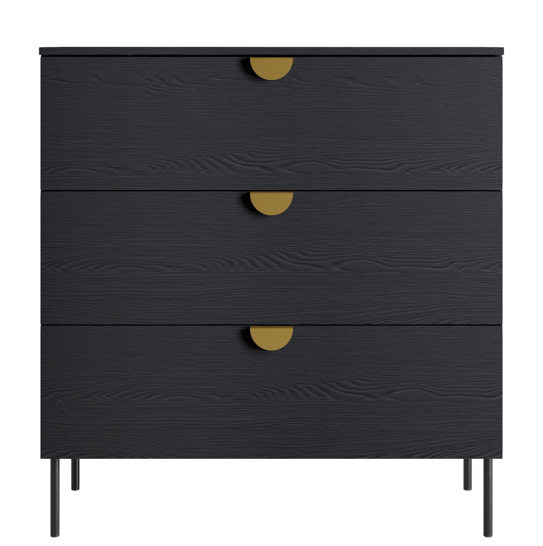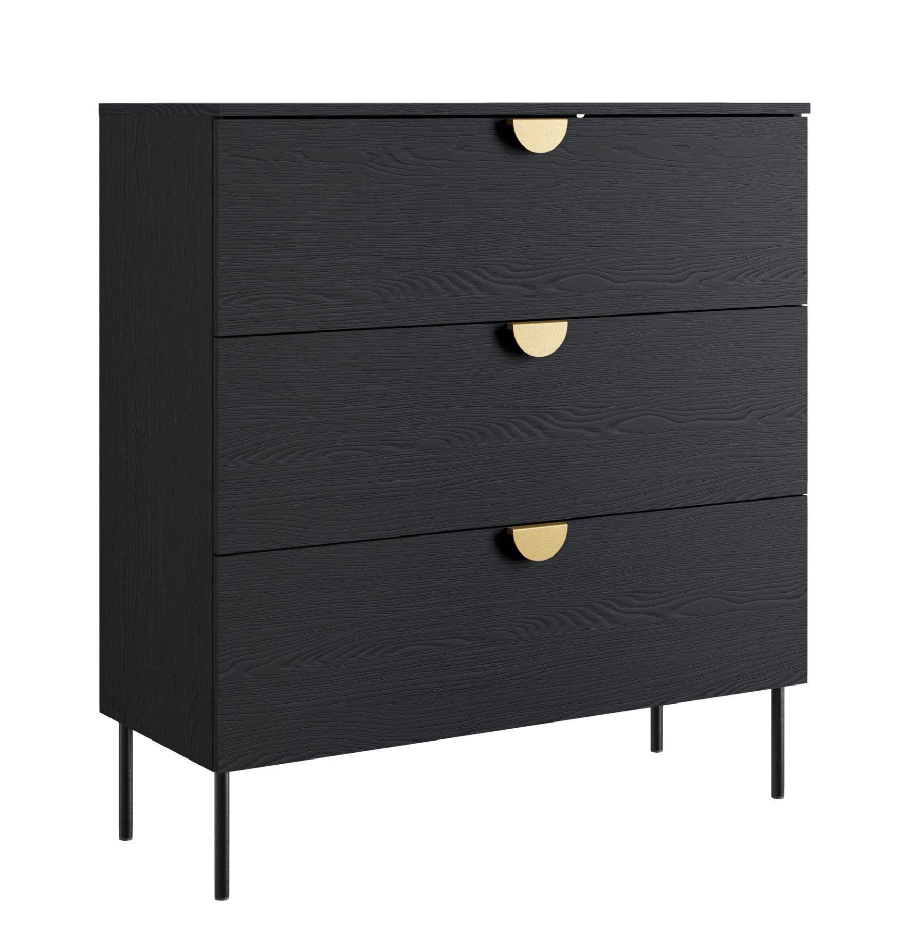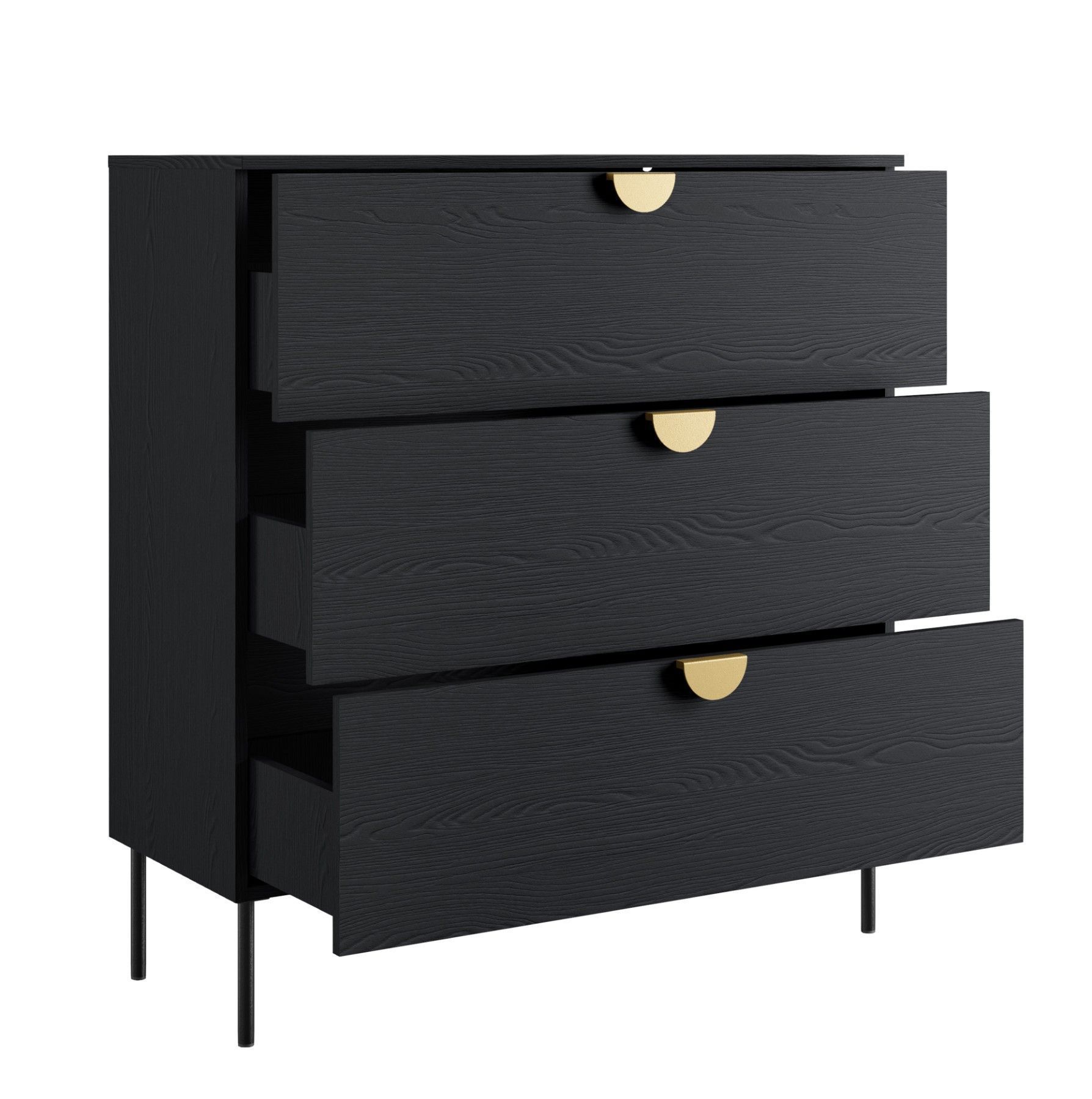 AX LIVING Kommode mit Schubladen Brunelli 100 cm Schwarz Gold Griffe