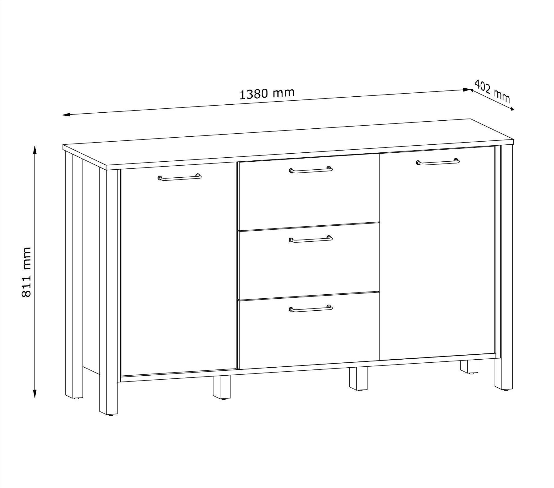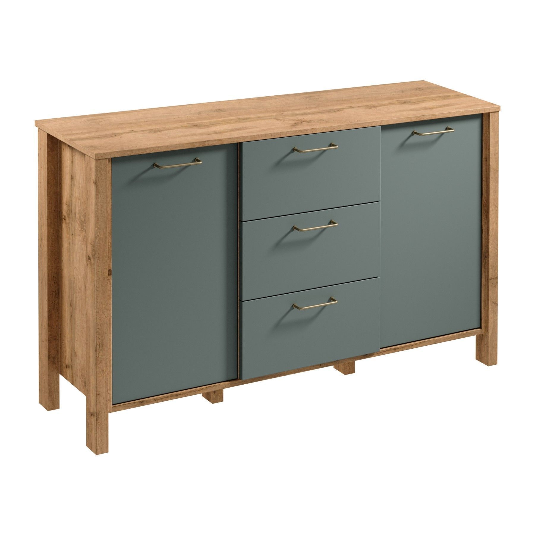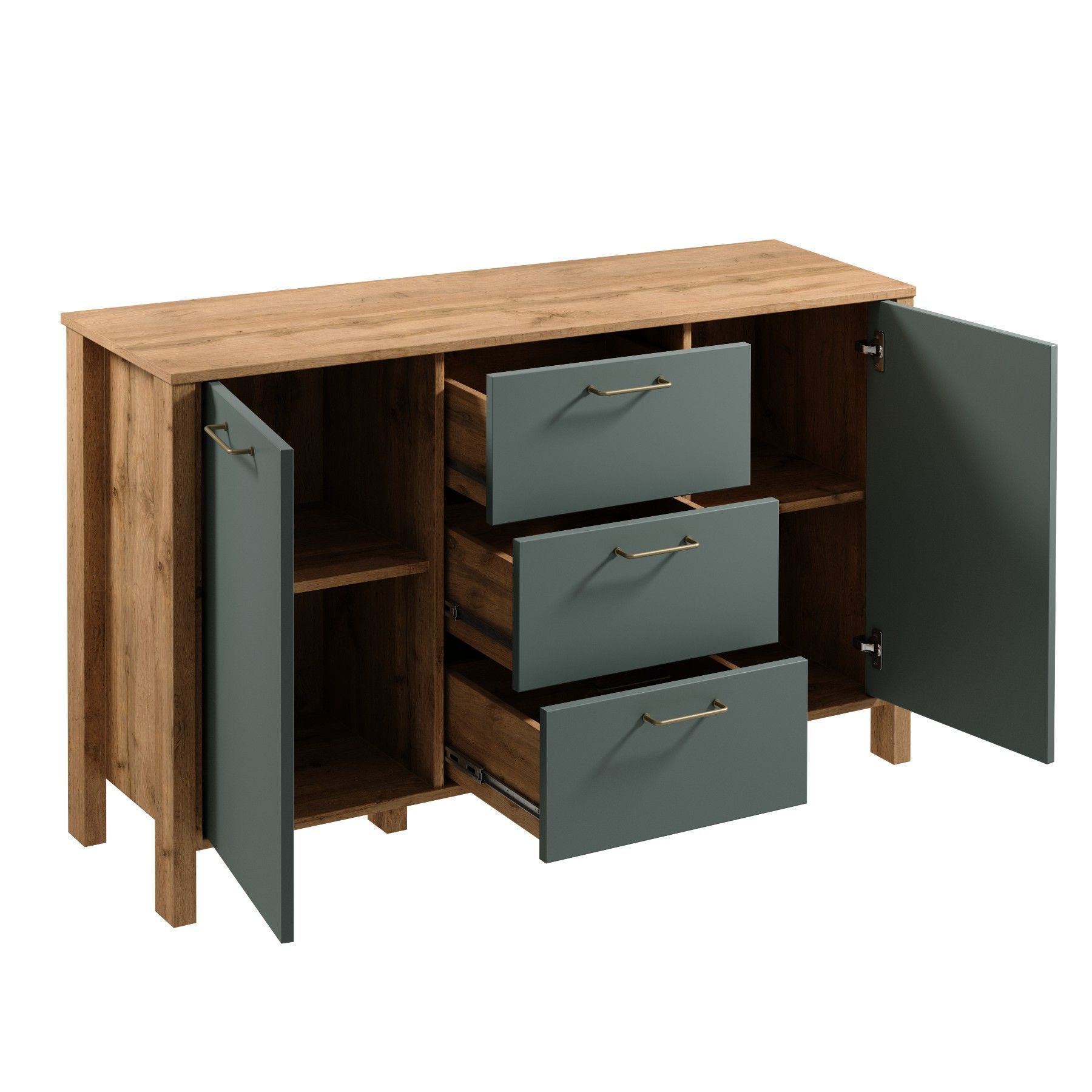 AX LIVING Kommode mit Schubladen Iseonia K2D3S 138cm Eiche Wotan/Green